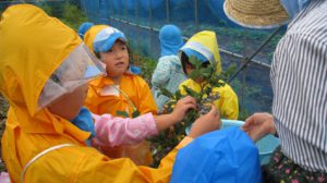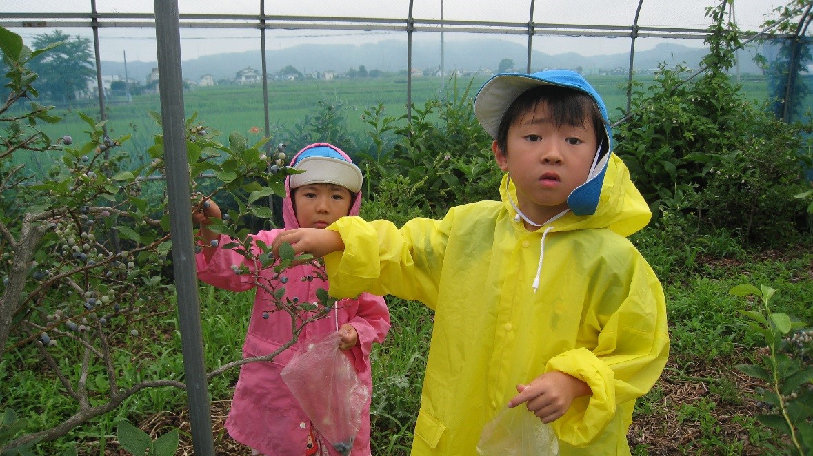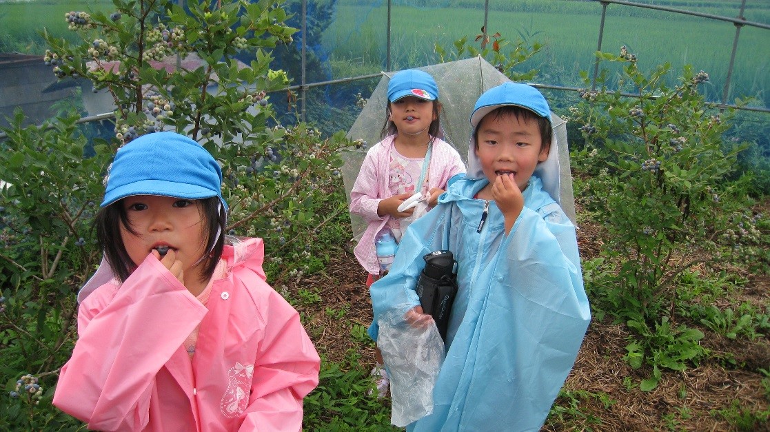 地域の方のご厚意で、年中さんと年長さんがブルーベリー狩りに行きました。