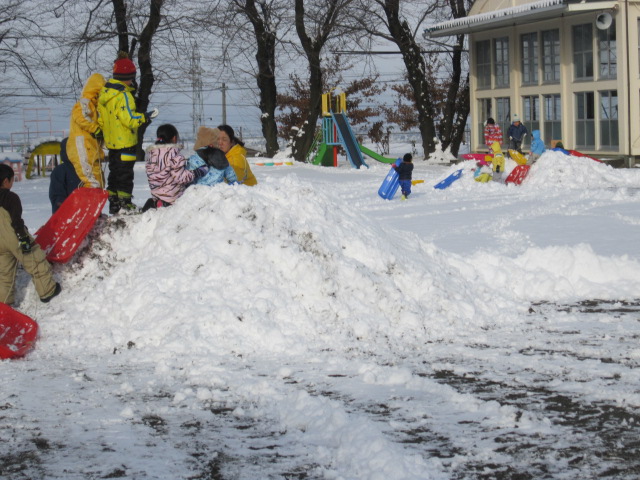 どの学年の子どもも、とっても楽しそうに本格的な雪遊びを楽しんでいました。雪だるま、かまくら、そりあそび、かき氷作りなどいろいろな遊びをしていました。子ども達と雪遊びをしていて、他県(あまり雪の降らない所)から転入してきた一人の女の子が、「ゆきあそび、たのしーい!!」と目をキラキラさせていつまでも遊んでいる姿がとても心に残っています。長野県ならではの、この季節にしかできない遊び、いい経験になったのではと思います。