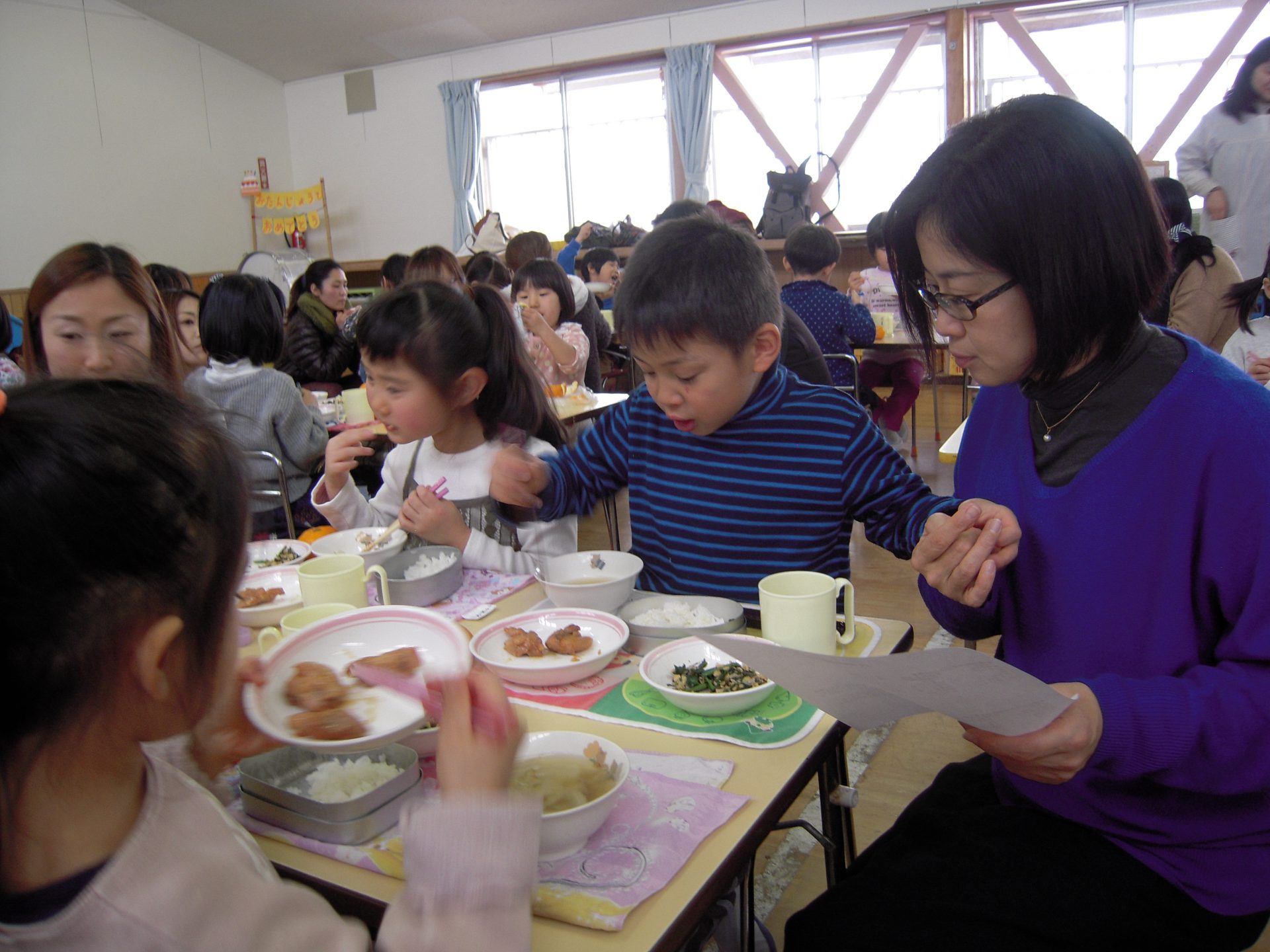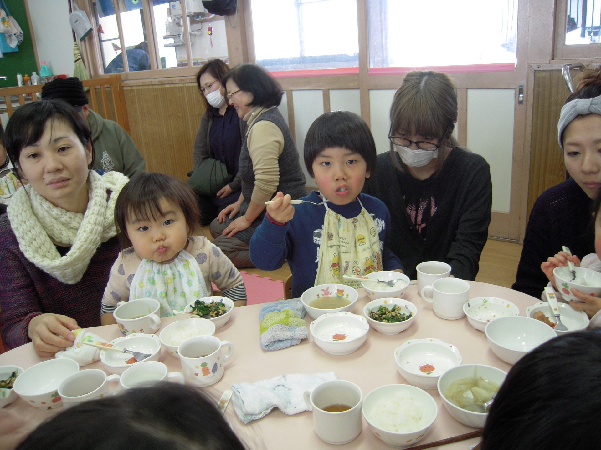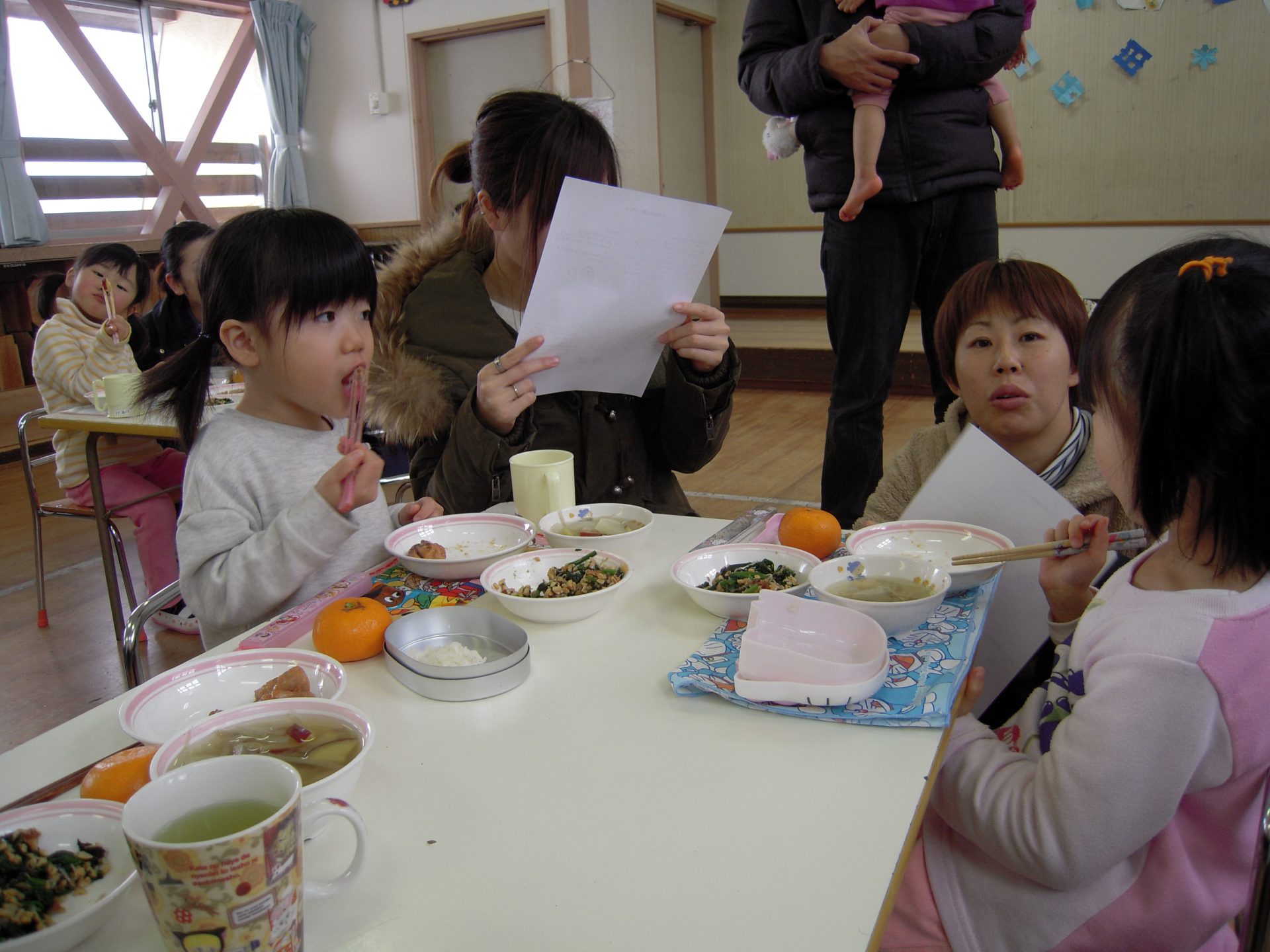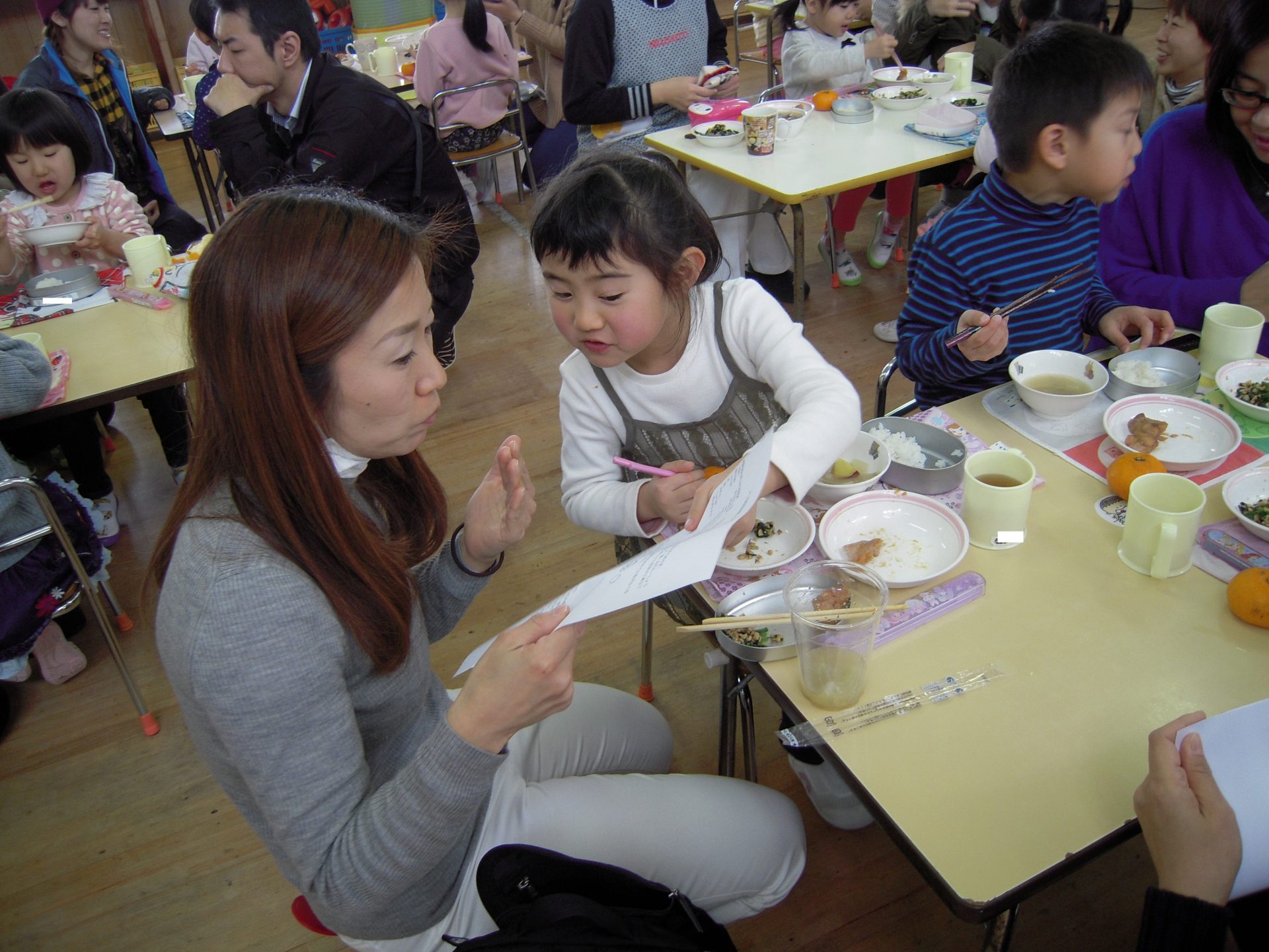 いつもはおかわりをしてもりもり食べる子が、保護者の方々がいらっしゃるいつもとは違う雰囲気にちょっと恥ずかしそうな様子や、
