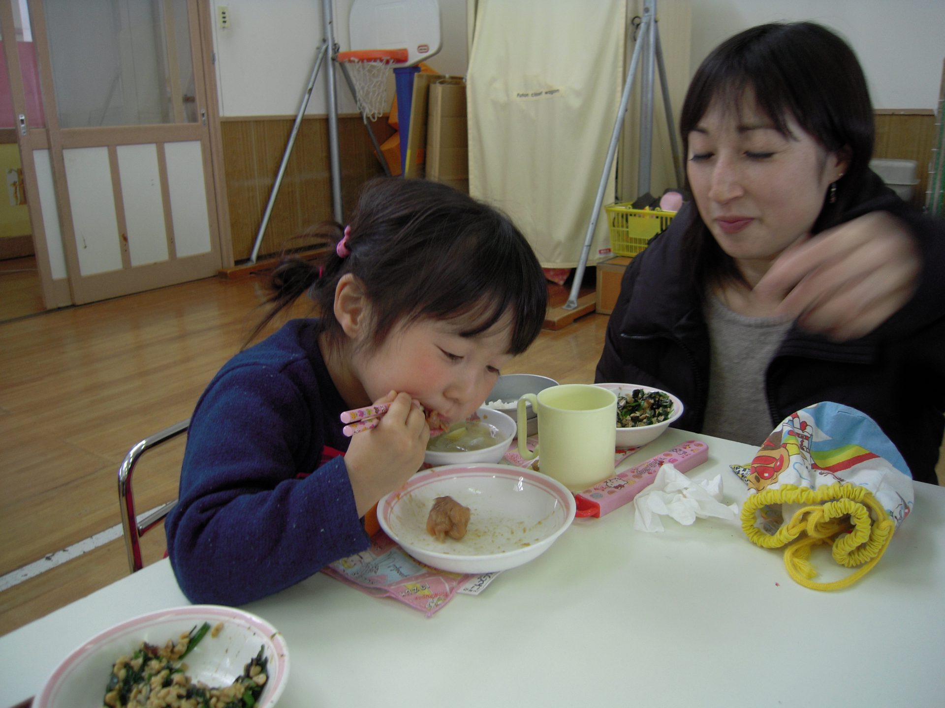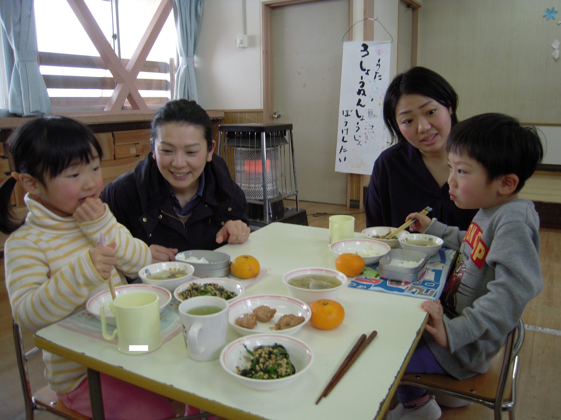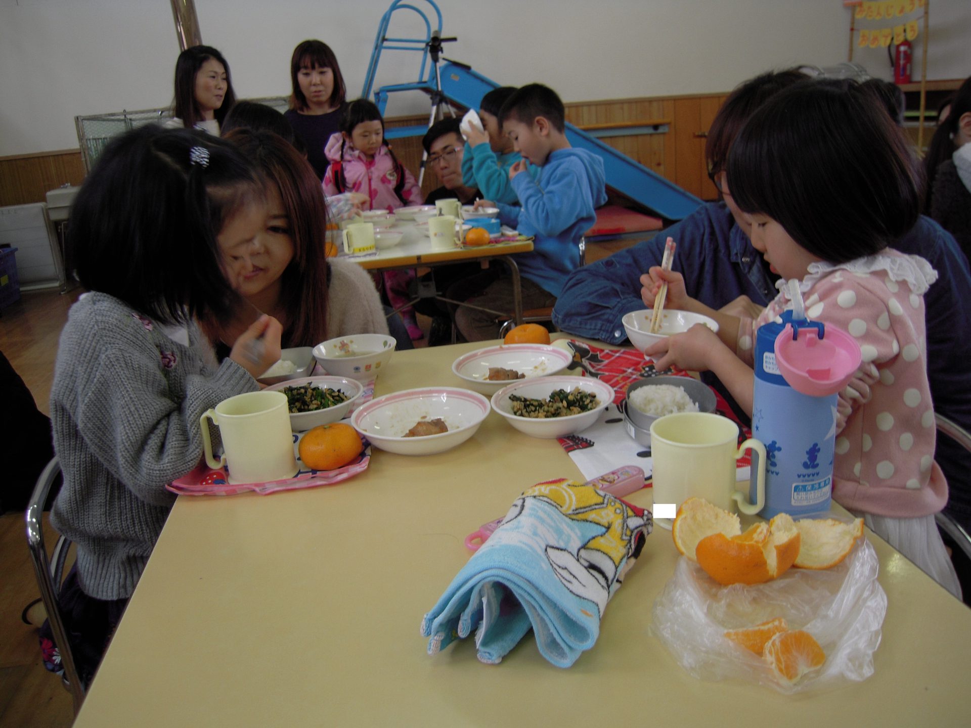 いつもはおかわりをしてもりもり食べる子が、保護者の方々がいらっしゃるいつもとは違う雰囲気にちょっと恥ずかしそうな様子や、