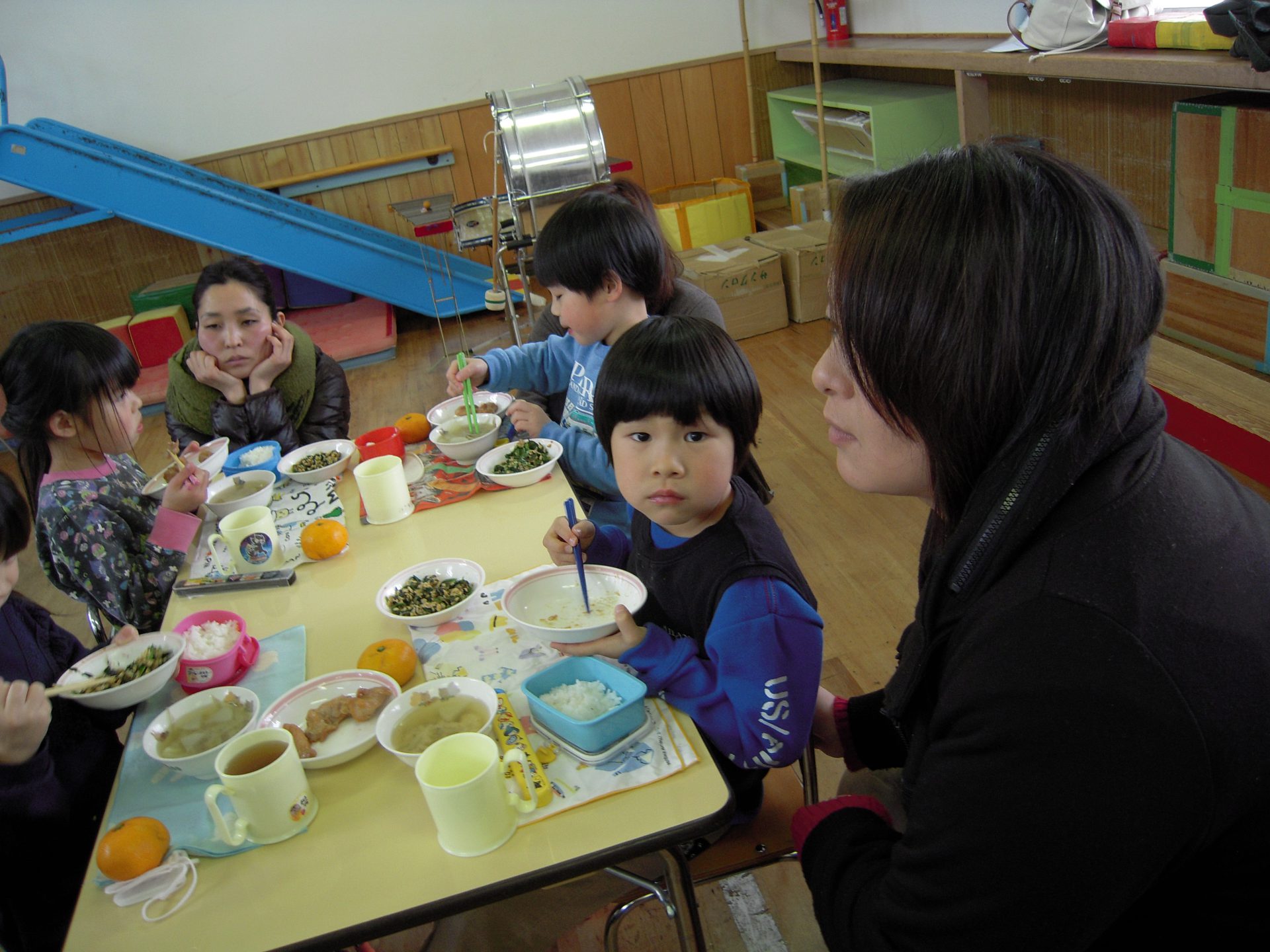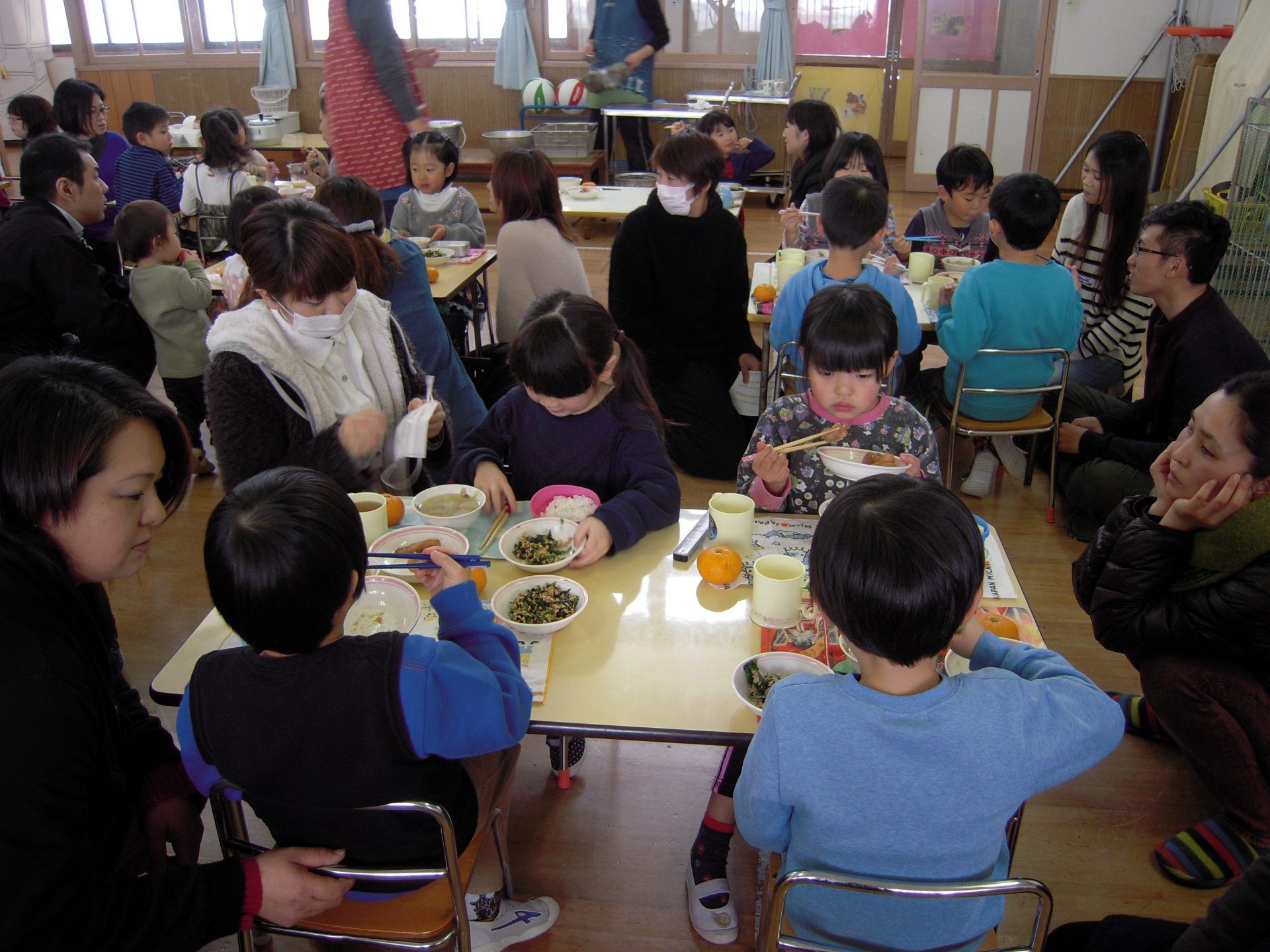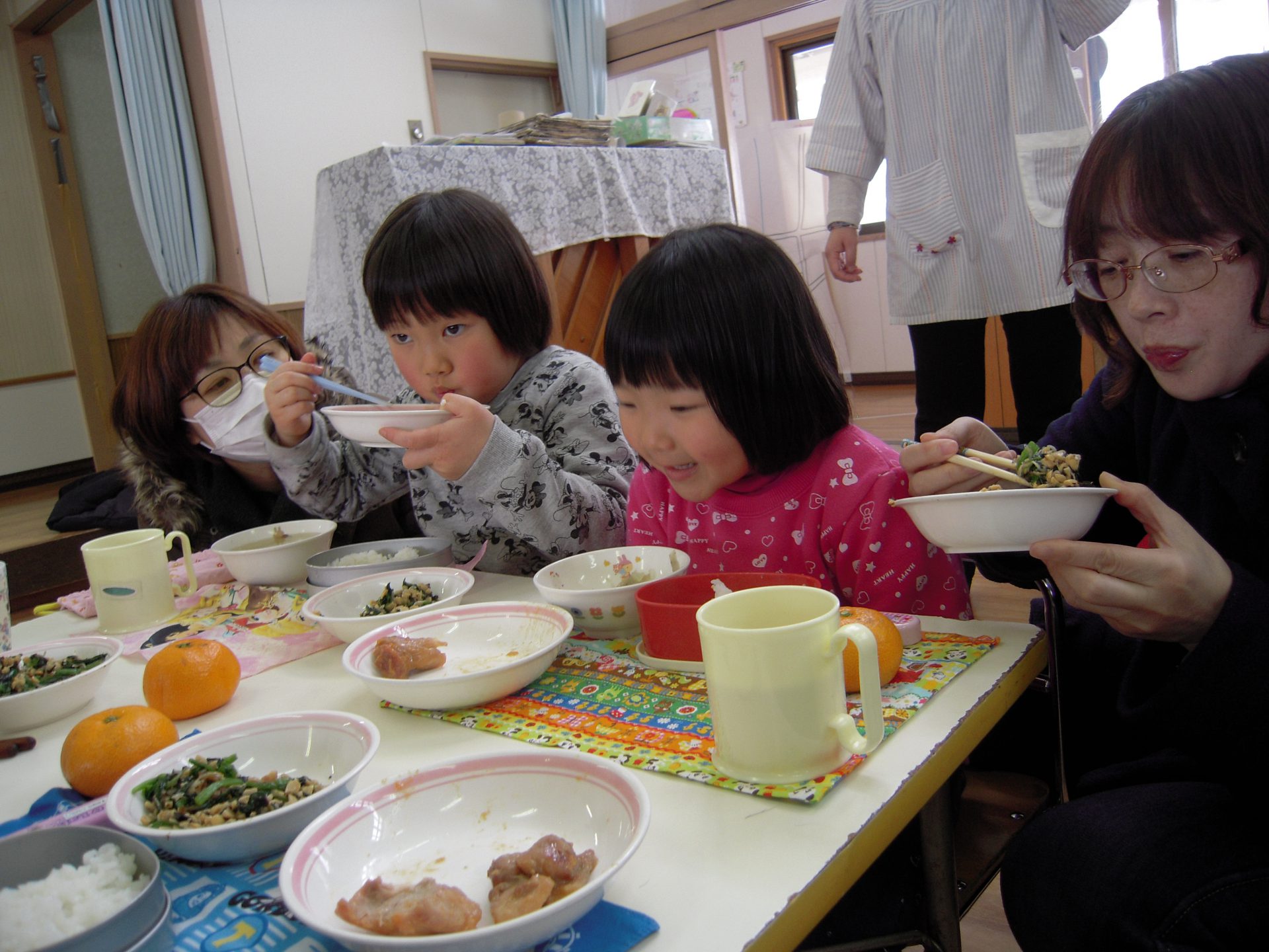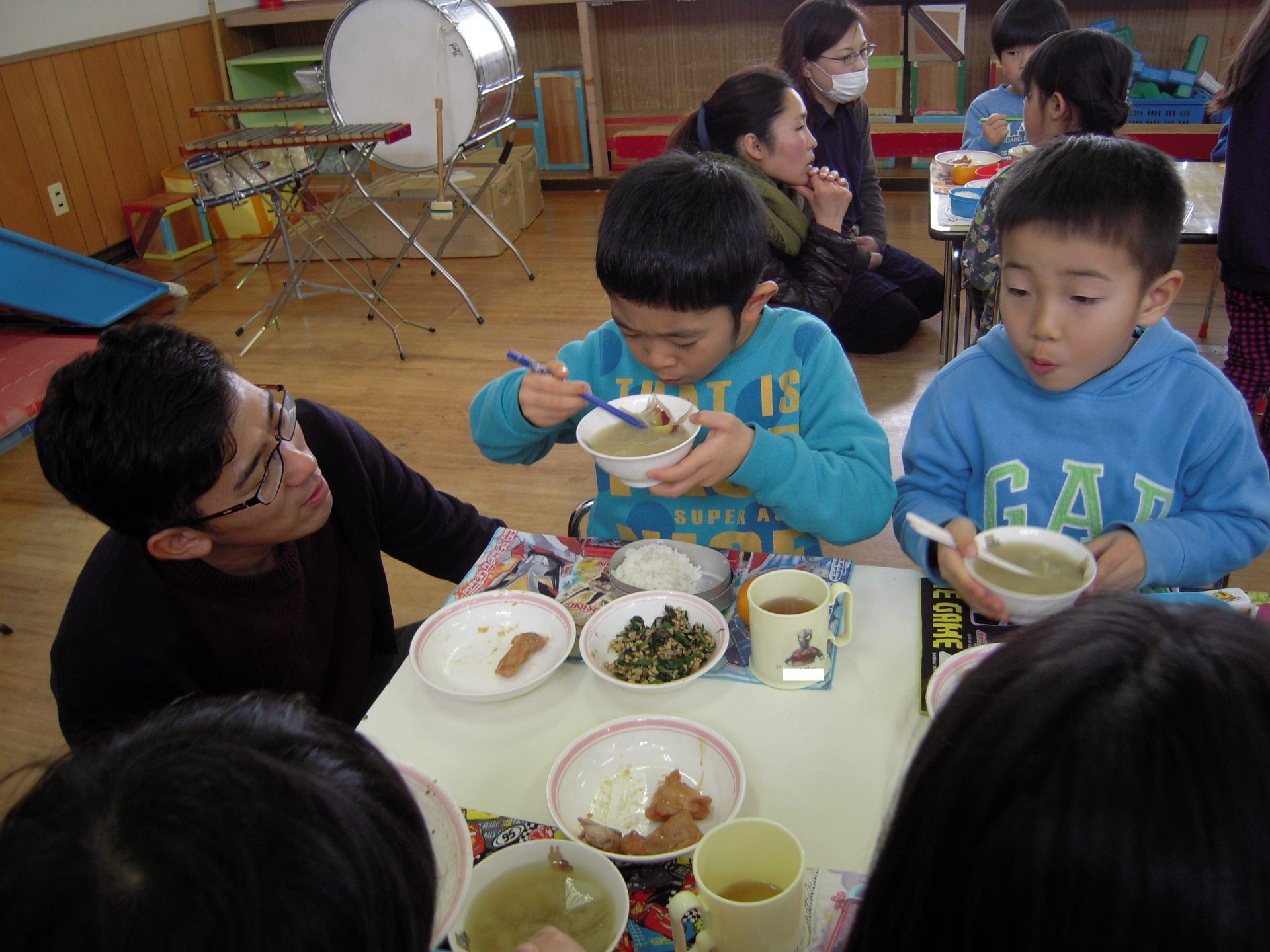 いつもはおかわりをしてもりもり食べる子が、保護者の方々がいらっしゃるいつもとは違う雰囲気にちょっと恥ずかしそうな様子や、