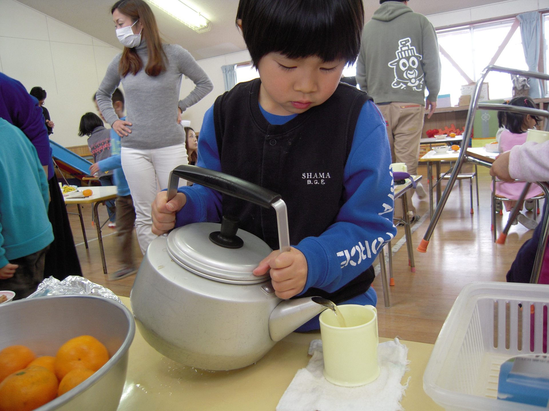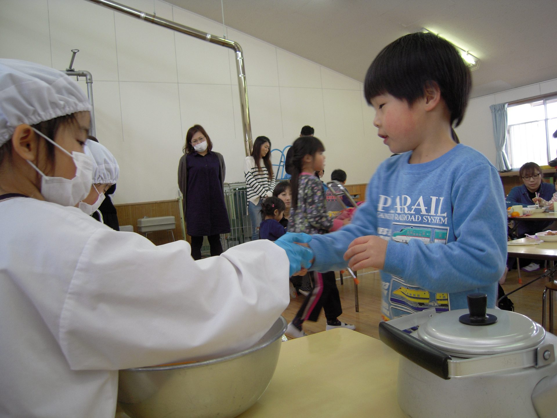 今日は保護者の方にちょっと助けてもらった子と、試食してもらう分がないくらいあっという間に食べてしまった子と色々だったようですが、みんなちょっと緊張しつつも嬉しそうな姿が印象的でした。