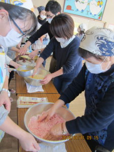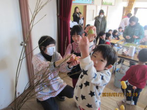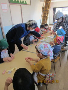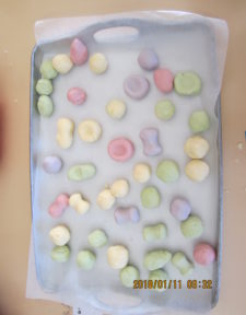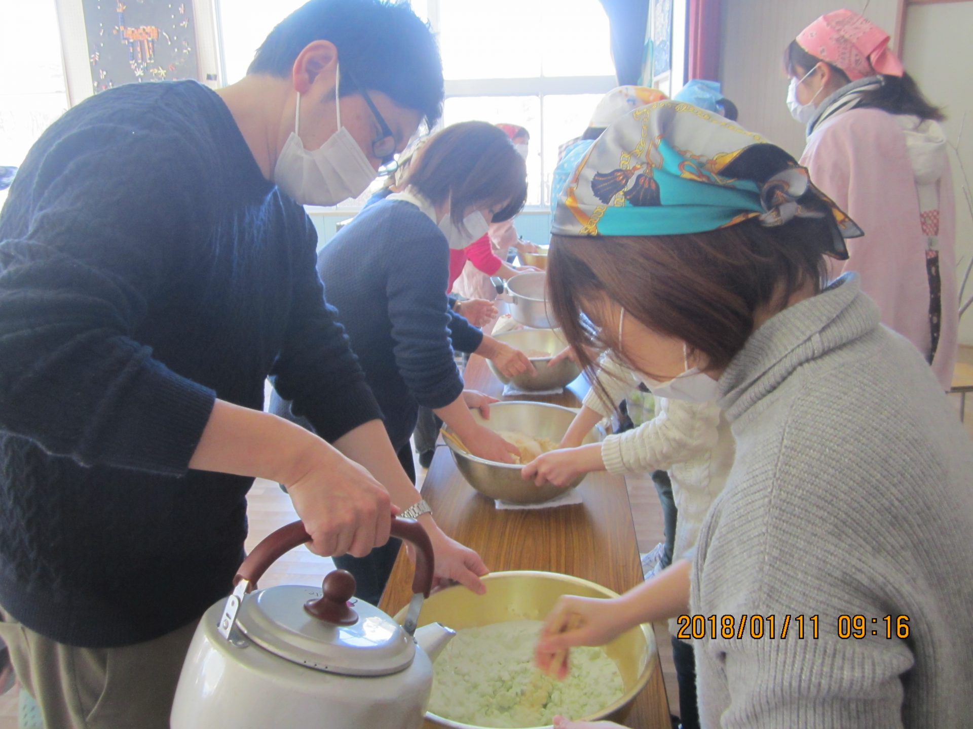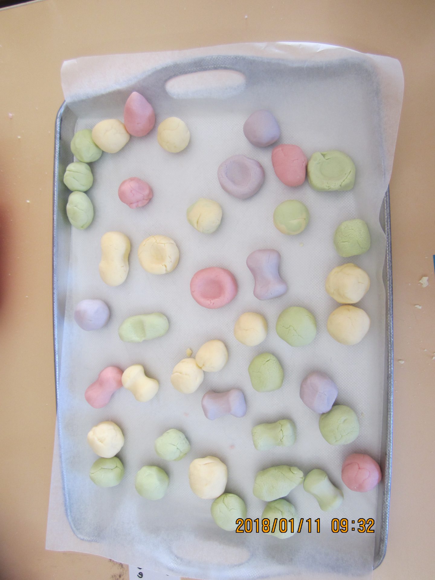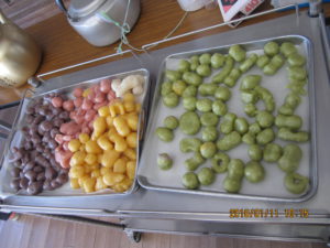 みんなで一緒に作ったおもの。いい香りがしたり、形を作るのが楽しかったり、工夫して作ったみたりとても楽しい時間でした。どの味が一番おいしい?なんて食べるときにはみんなでワイワイ盛り上がりました。1番人気は、ブドウジュースでした。甘いからかな^^