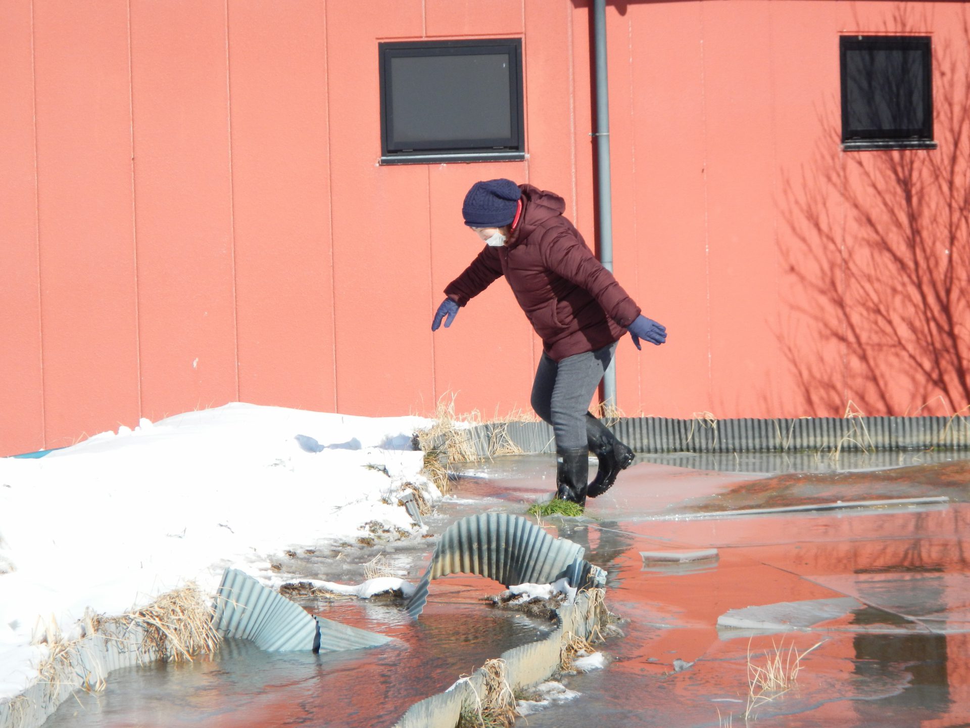 大人が乗ると氷がバキバキ割れてしまいます。「先生は来ちゃダメー!!」と言われてしまいました…。