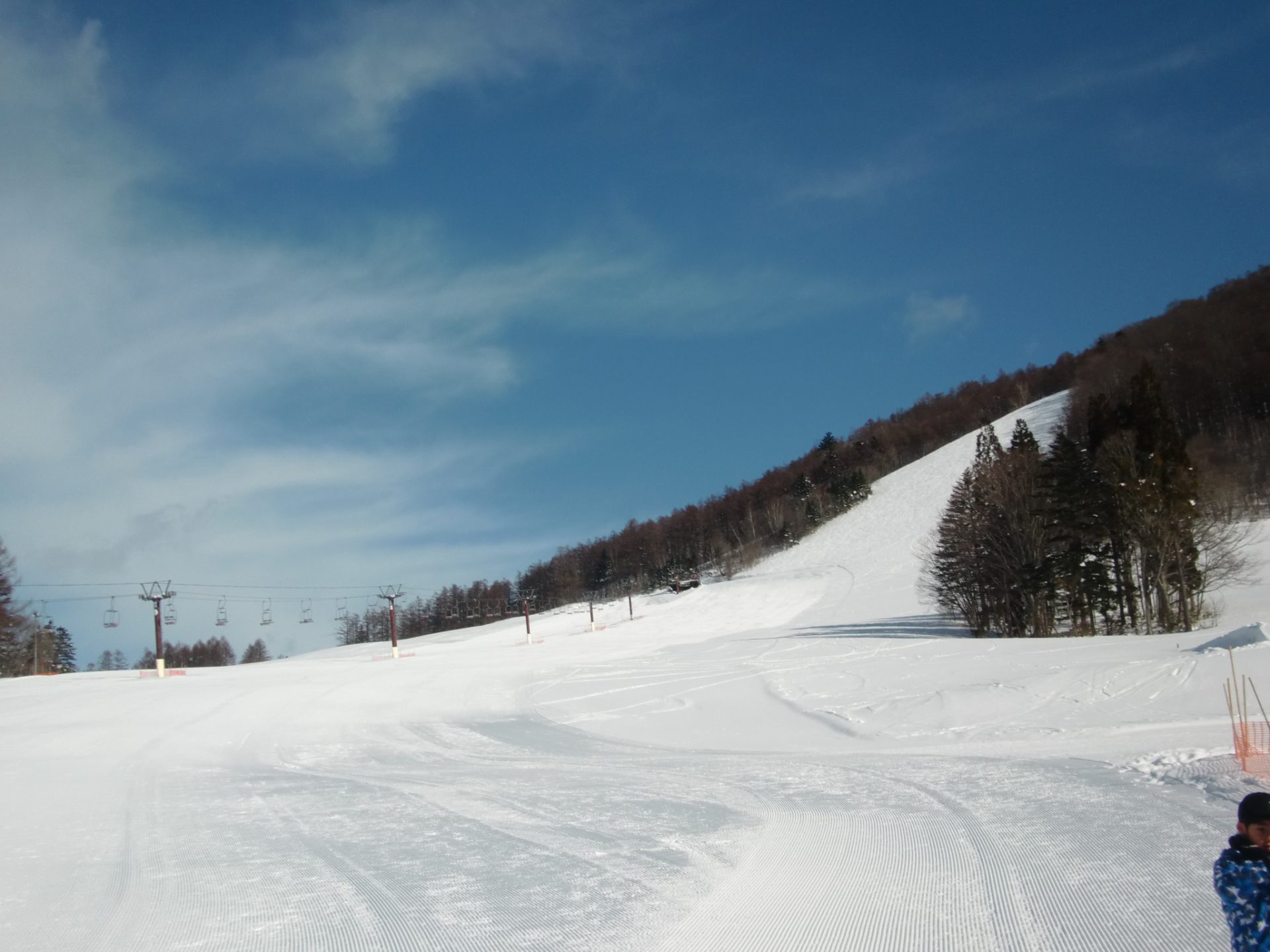 快晴の戸隠スキー場!青い空、白い雪、迫ってくるように綺麗に見える戸隠連山。何よりのスキー場日和です。