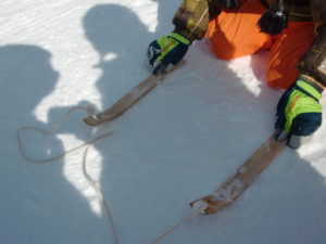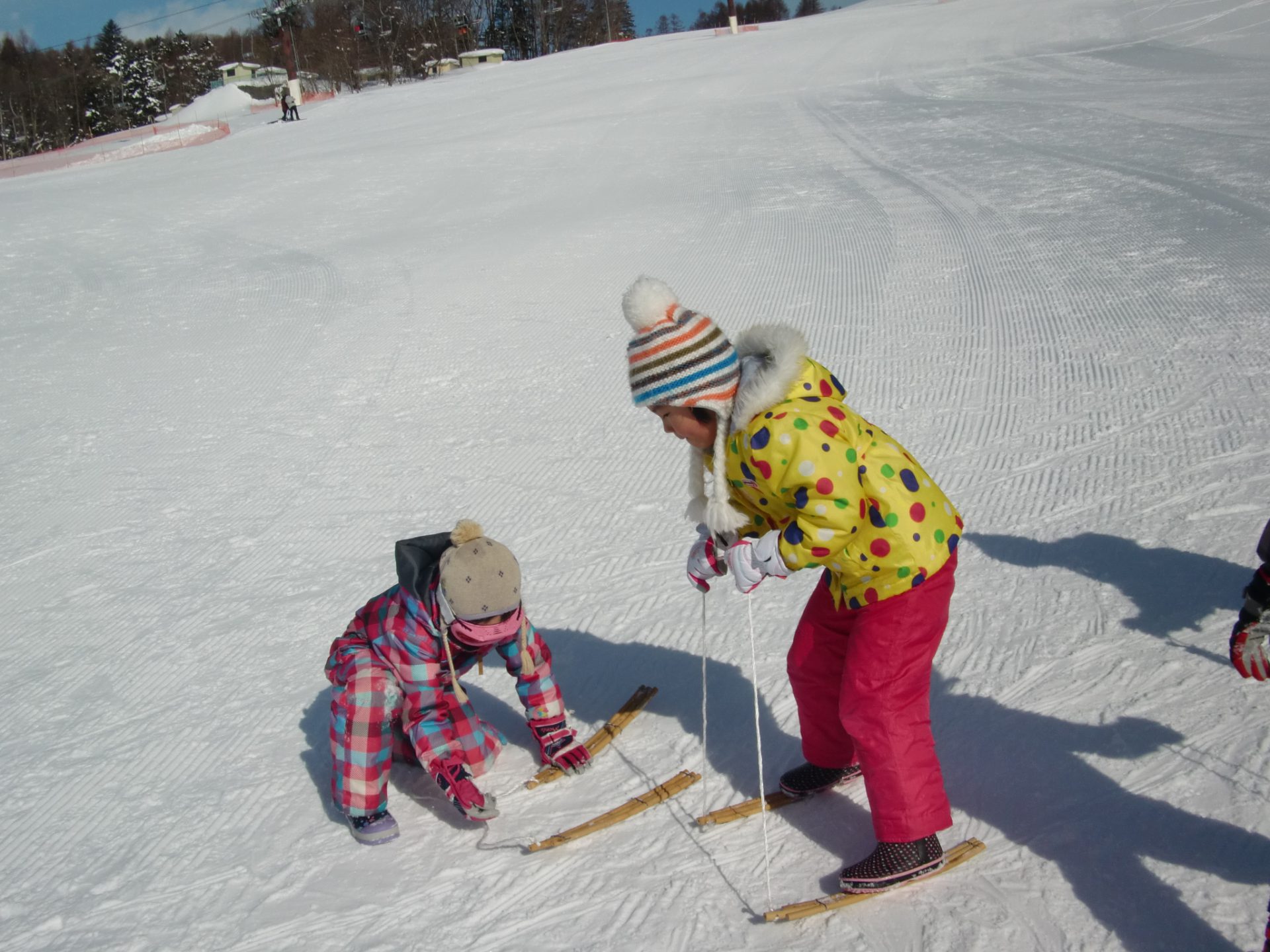 地元の方に竹スキーの乗り方を教えてもらいました。