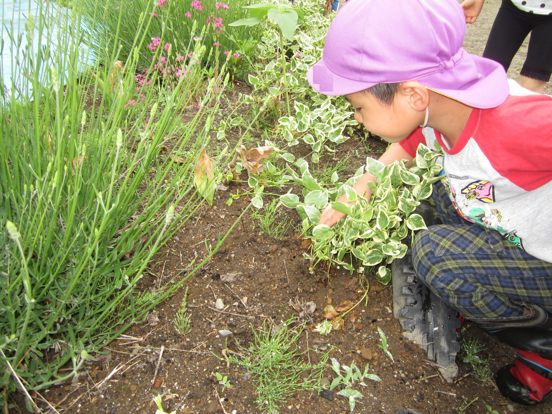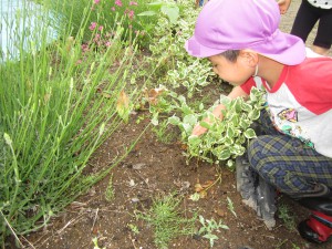 梅雨に入り雨降りの日でしたが、日中雨があがったので園庭に出てみました。