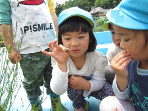 小さな生き物が大好きな子ども達!時期ならではのカタツムリが園庭で見つけられるとても恵まれた環境で保育させてもらっているのだと改めて実感しました。素晴らしい自然環境に感謝しながら、見つけた生き物を大切に育てて、子ども達にいろんな事を学んでいって欲しいと思います。
