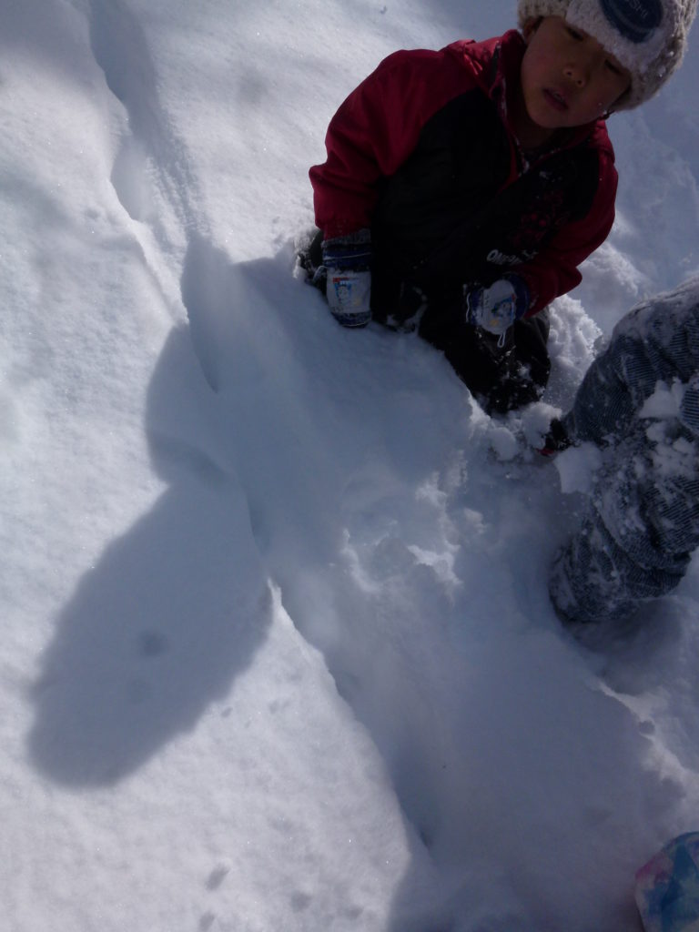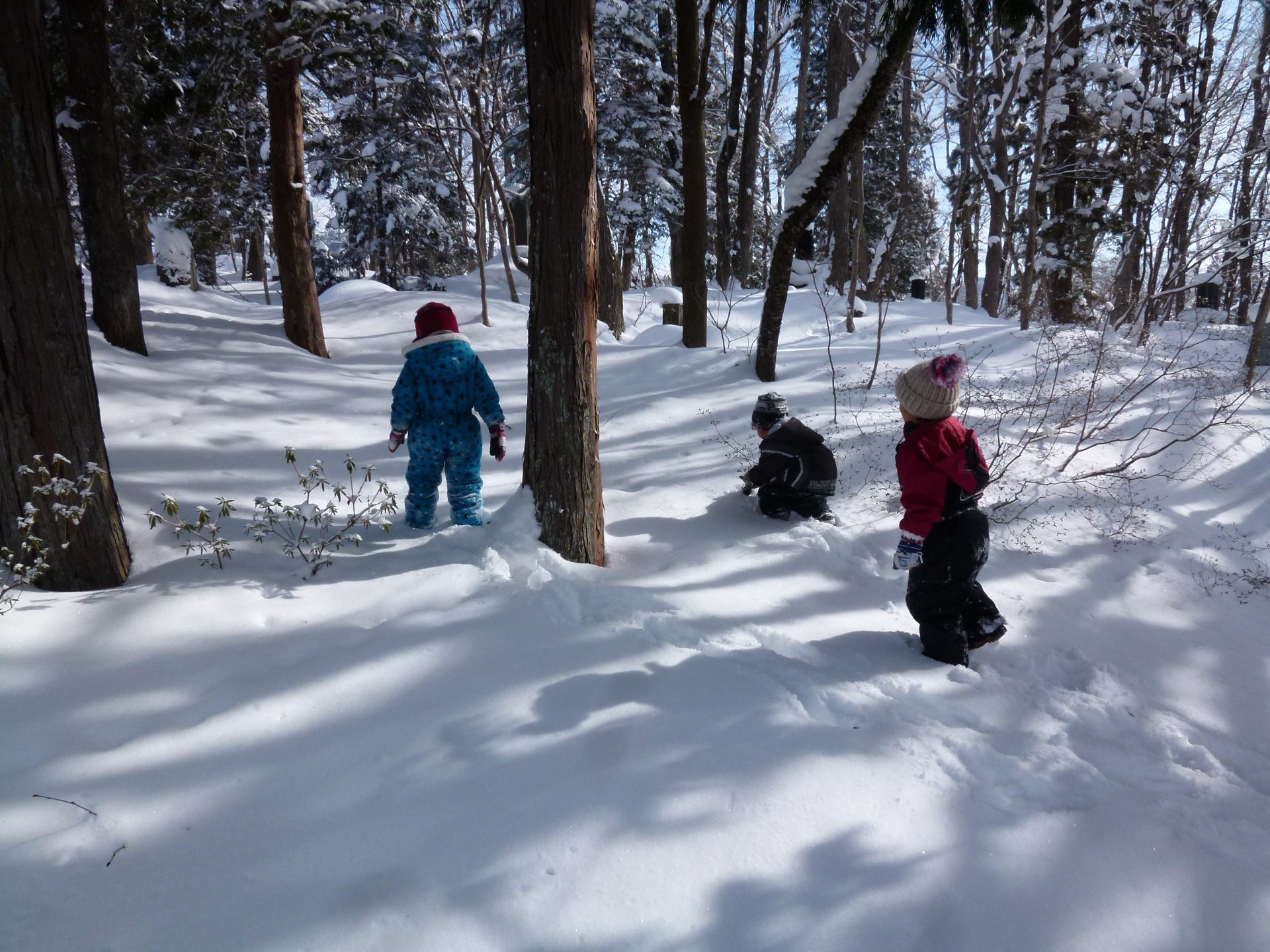 今回子ども達も見た足跡の正体が一体何の足跡だったのか、ちょこちょことあるいて行って見えた尻尾の正体が何のか謎は深まるばかり、、子ども達も次は会えるということを楽しみにしています。雪深いところならではの現象だったり出会いがあったりします。ただ遊びに行くだけでなくこの時期ならではの出会いや発見ができればと思います。