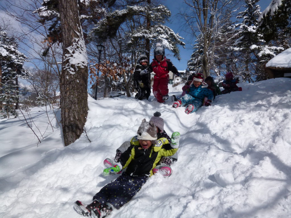 滑り出し順調!!うまく滑れるお友達は下の方まで滑って行ってしまうほど。