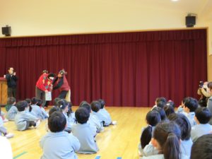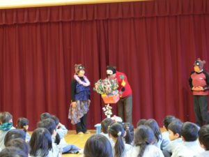 「お友達と仲良くできる人?」に元気に「はい!」と答える子供たち。劇を見ていてポンタがいじめられているところを見ていた時「ポンタ君、かわいそう・・・」とつぶやくこもいました。