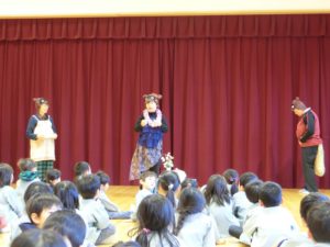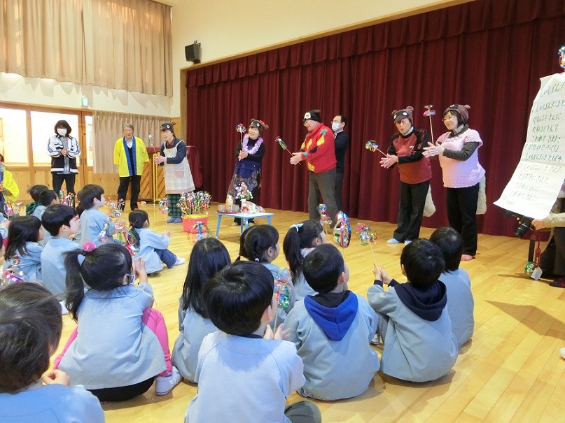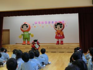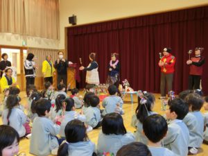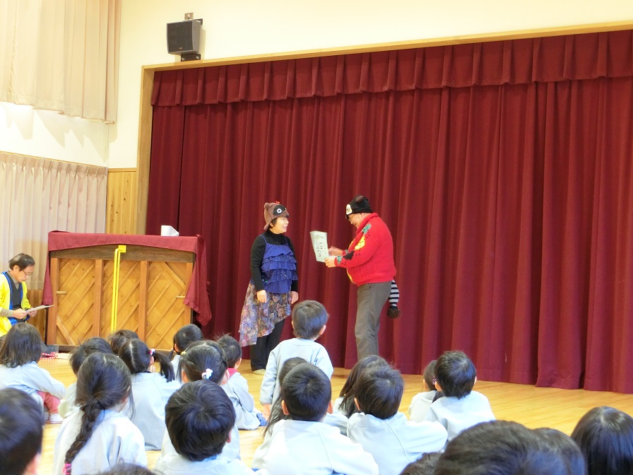 伊那人権擁護委員協議会が人権意識高揚を目的に東みのわ保育園を訪問してくださいました。園児たちにも分かりやすいようにと「たぬきのしっぽ」という劇を上演してくださいました。3歳以上の園児が観劇しました。