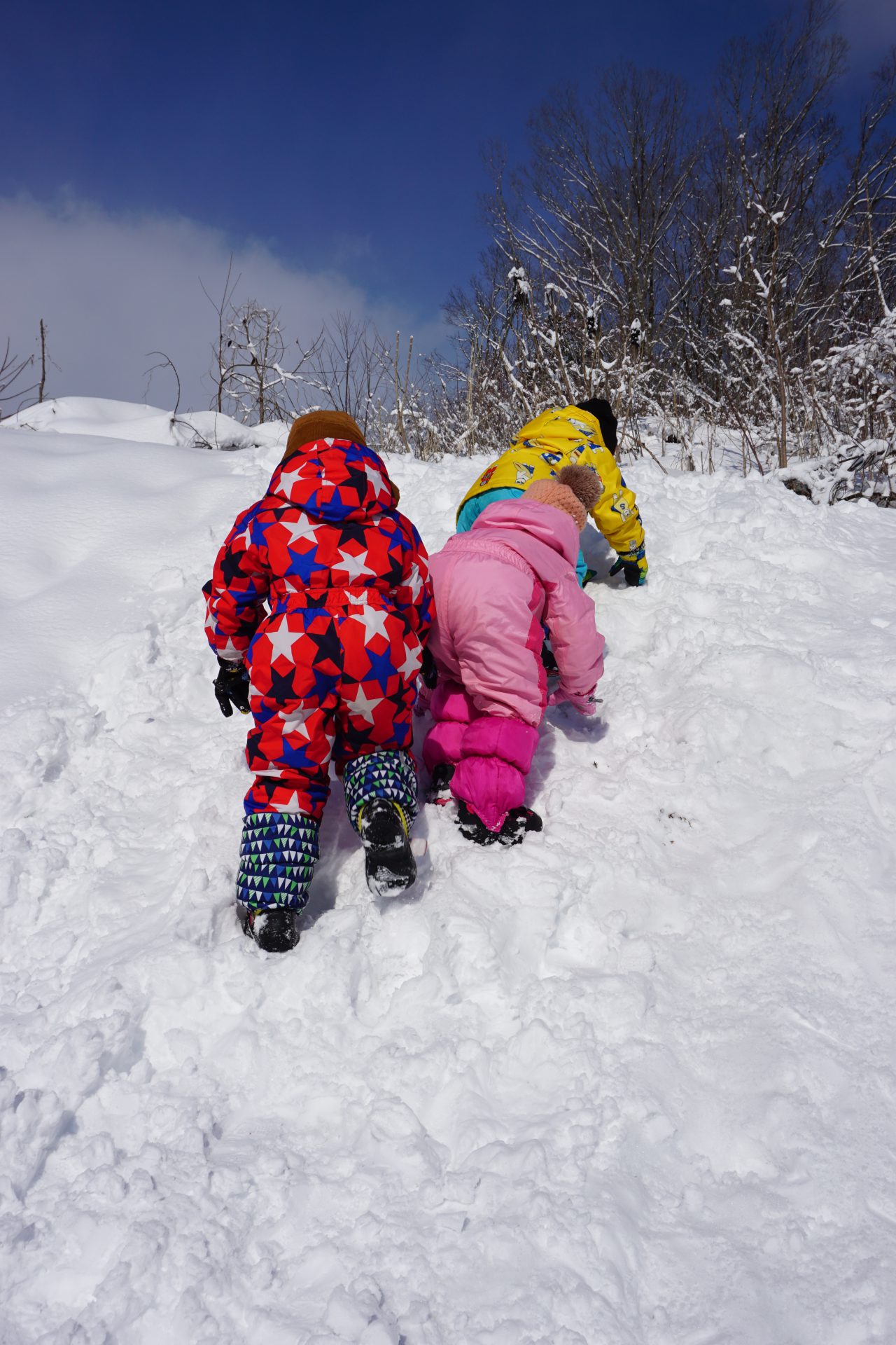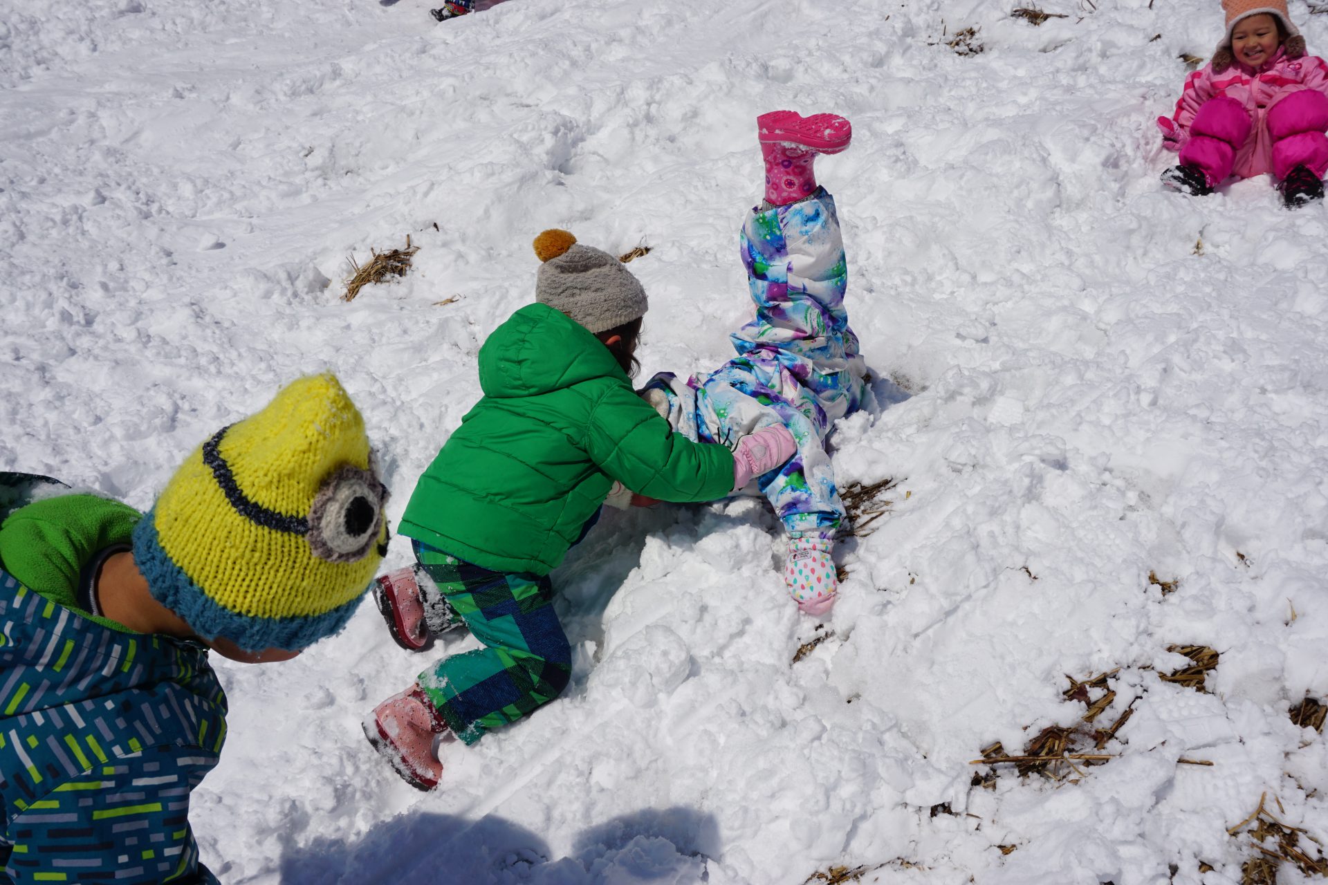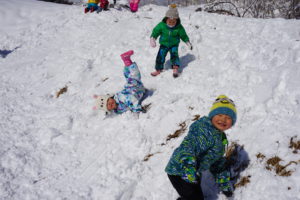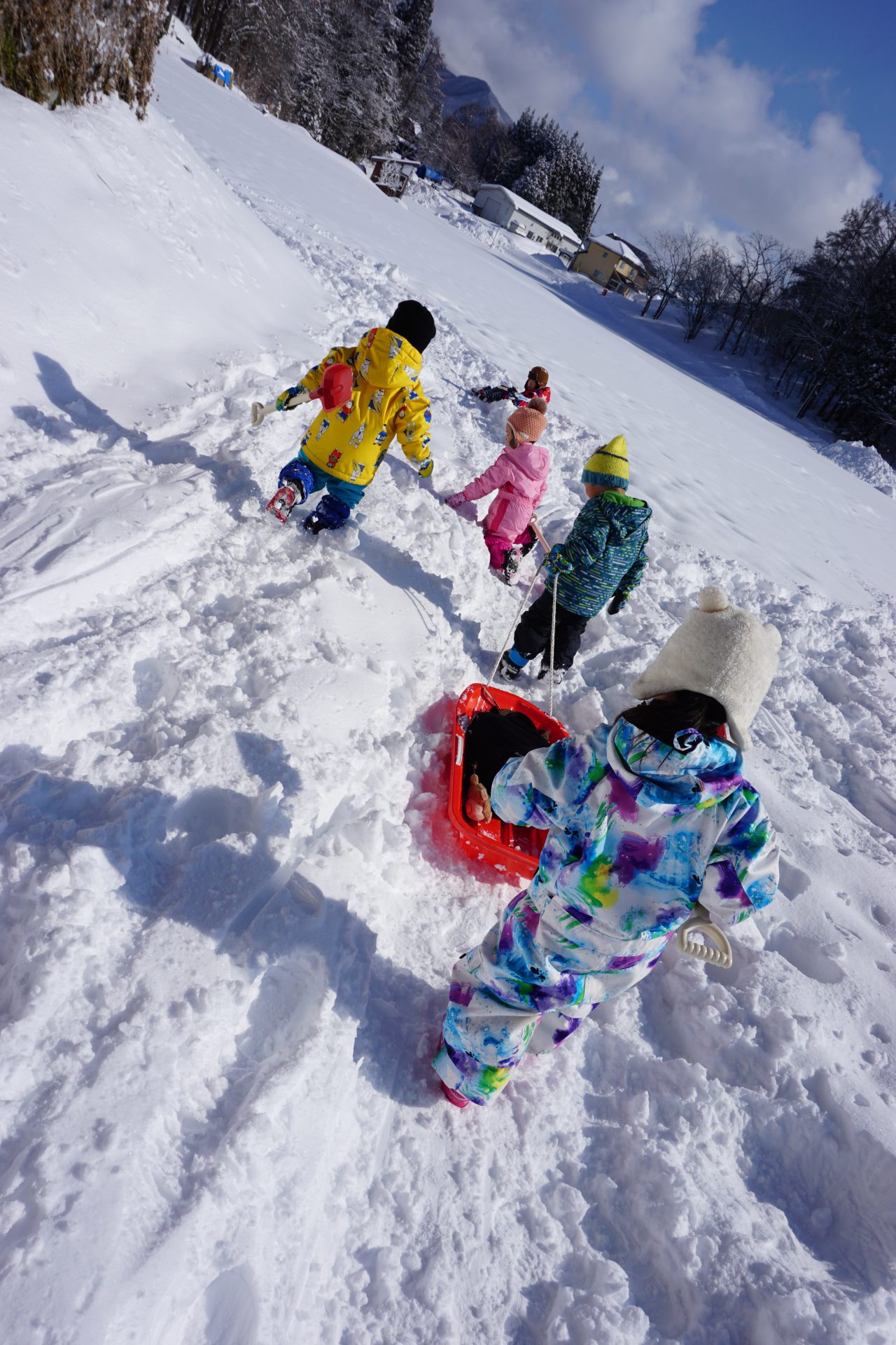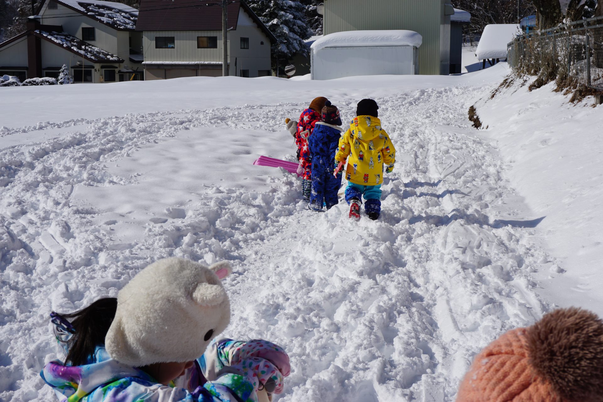 そして、この雪山探検を通して登れないお友だちに手をさしのべてあげたり、転んだお友だちを助けてあげたり、待っててあげたりとお友だちを思いやり、気にかける場面がたくさん見られました。ひとつの遊びから友だちと関わり、一緒に遊ぶことの楽しさをこれからも味わってほしいと思います。