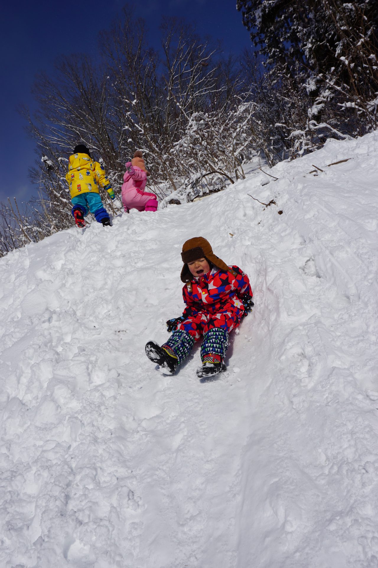 尻すべりと違ってスピード感が違う!!!何度も何度もくりかえし滑り楽しんでいました。