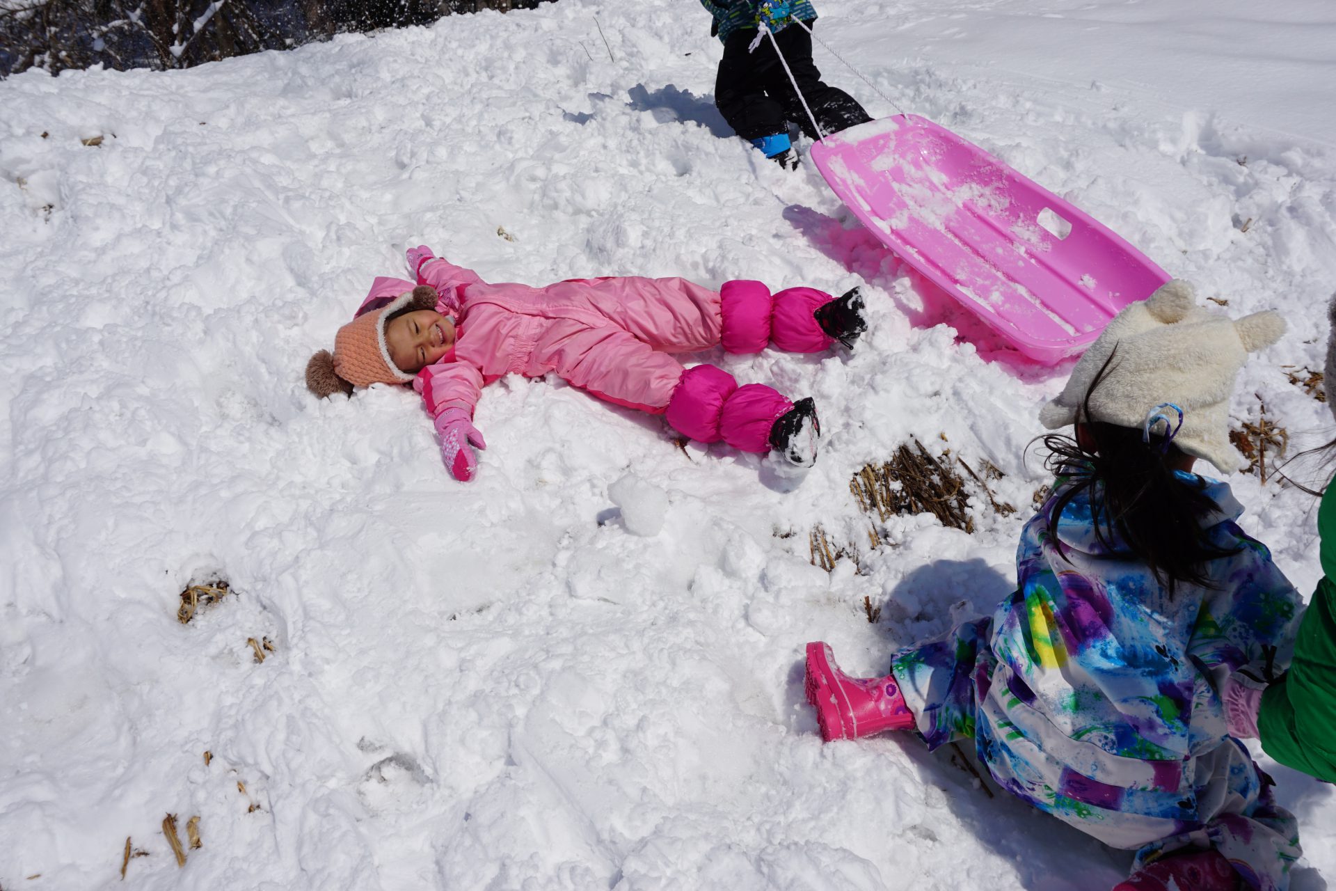 その大きさに大興奮の子どもたち。雪遊びがはじまりました。