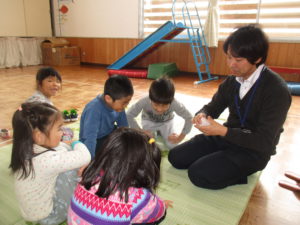 「やったことあるよ!」「かえるが出て来るお話もあるよね」