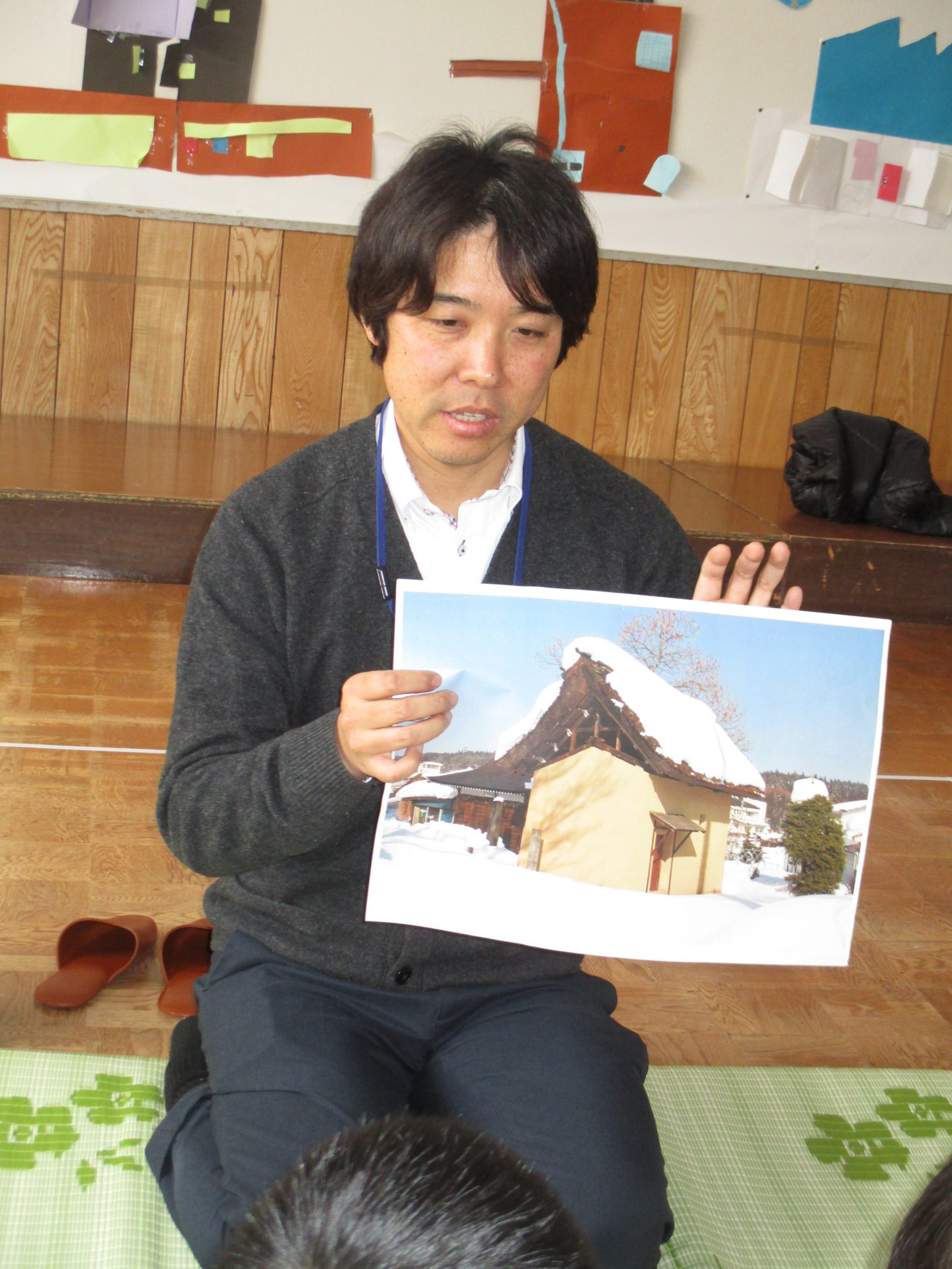 みんなのおうちは床があるけど、一茶さんのおうちは床がなくて土なんだ。
