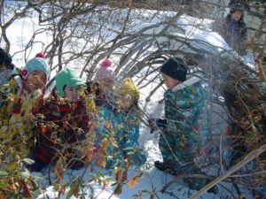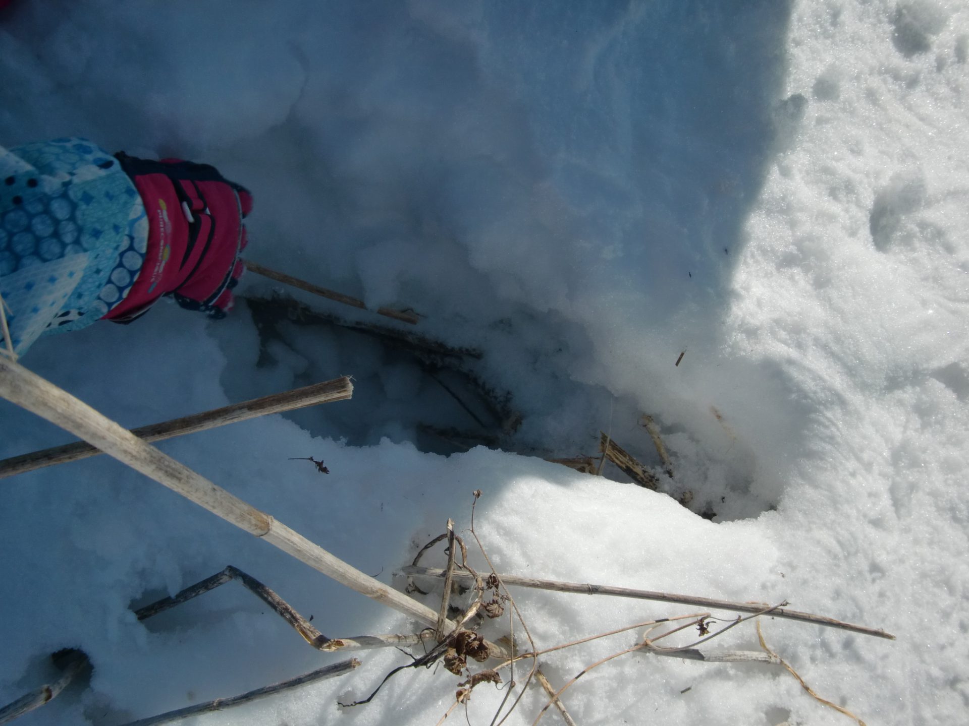 自分の周りに枯れた枝を雪に刺して、その周りに凍った雪を立てていけば、まるで家のようになりました。