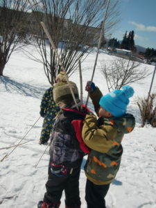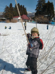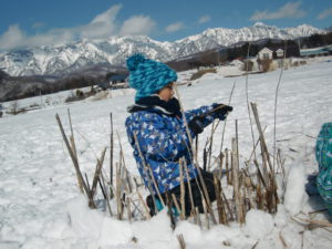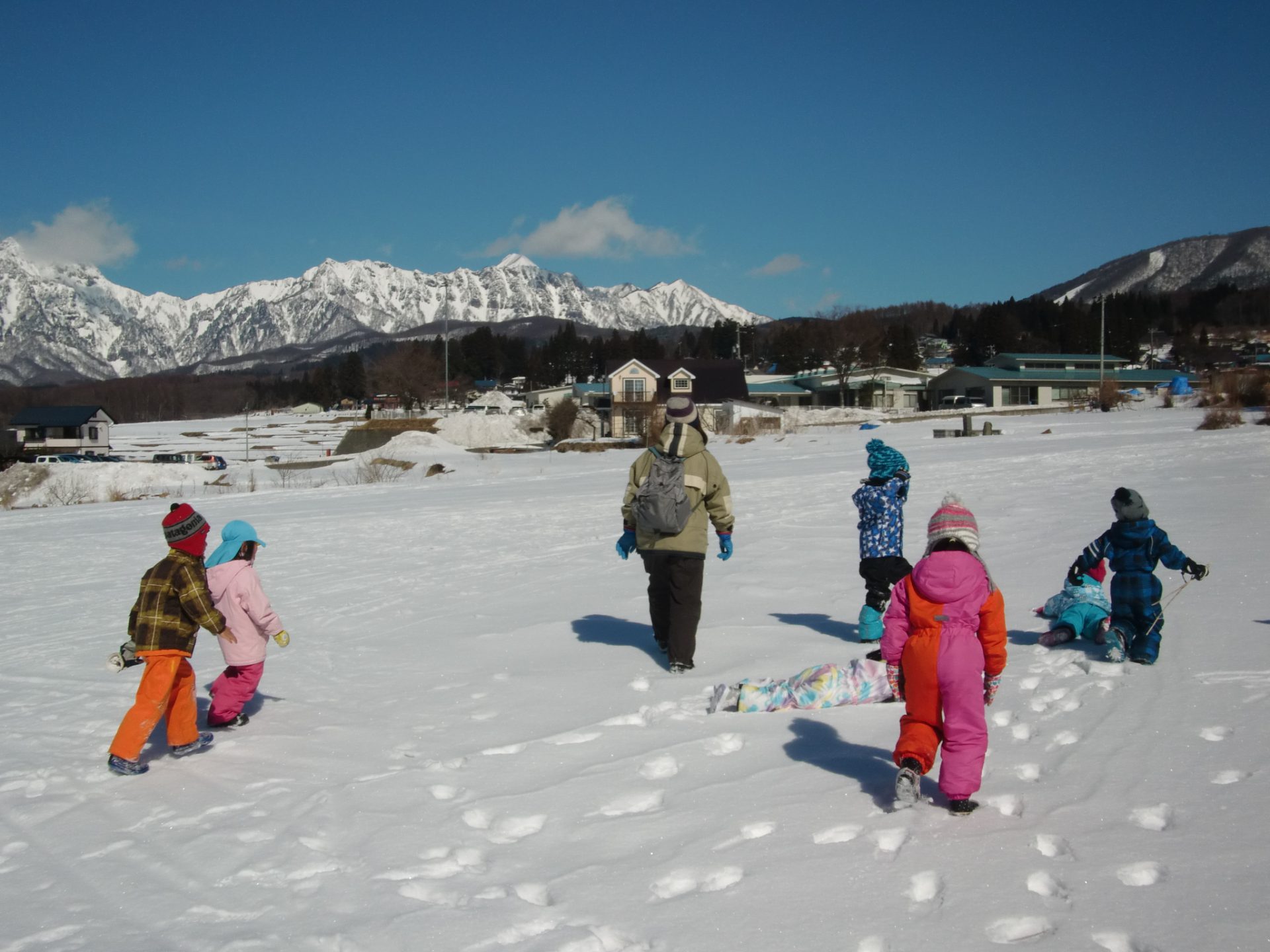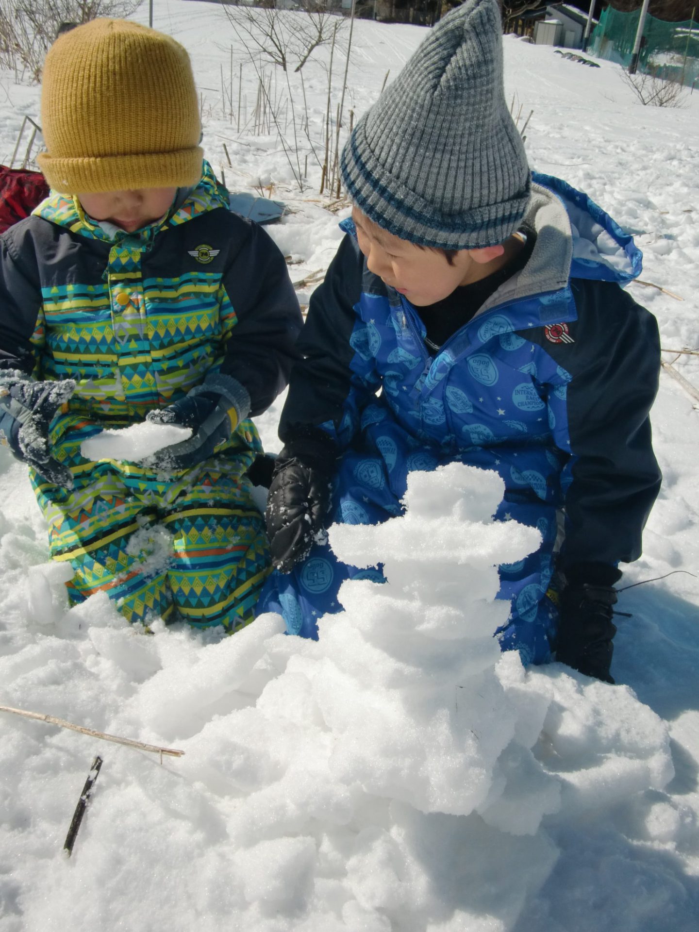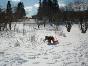今日の雪原での子どもたちの次から次へと出てくる楽しい遊びを見ていて、子ども達の発想力の豊かさに驚かされました。