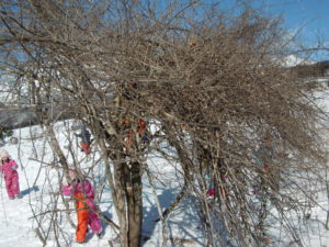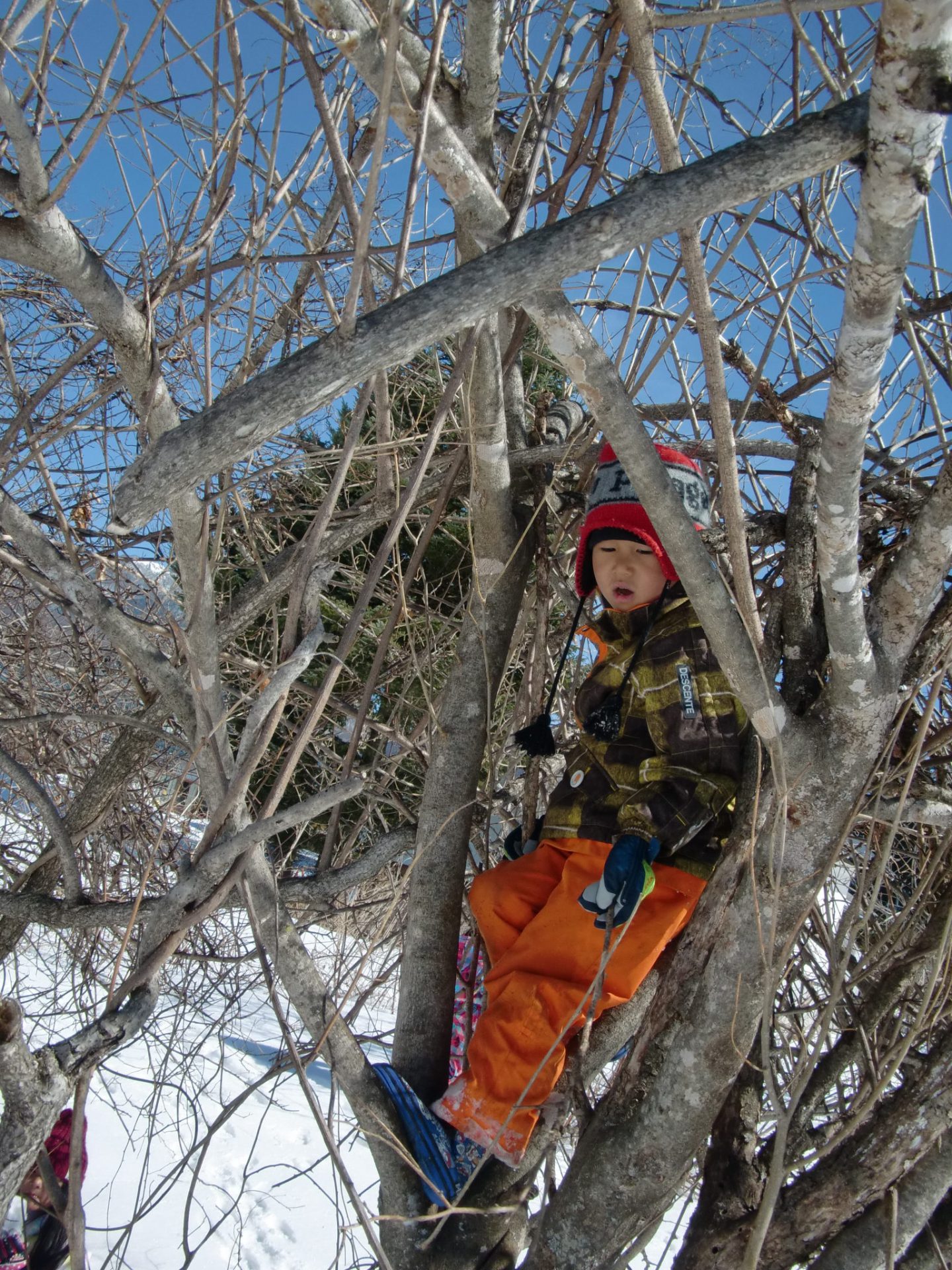 雪がたくさん積もった後の木登りは、いつもより高いところまで登ることが出来て楽しそう。