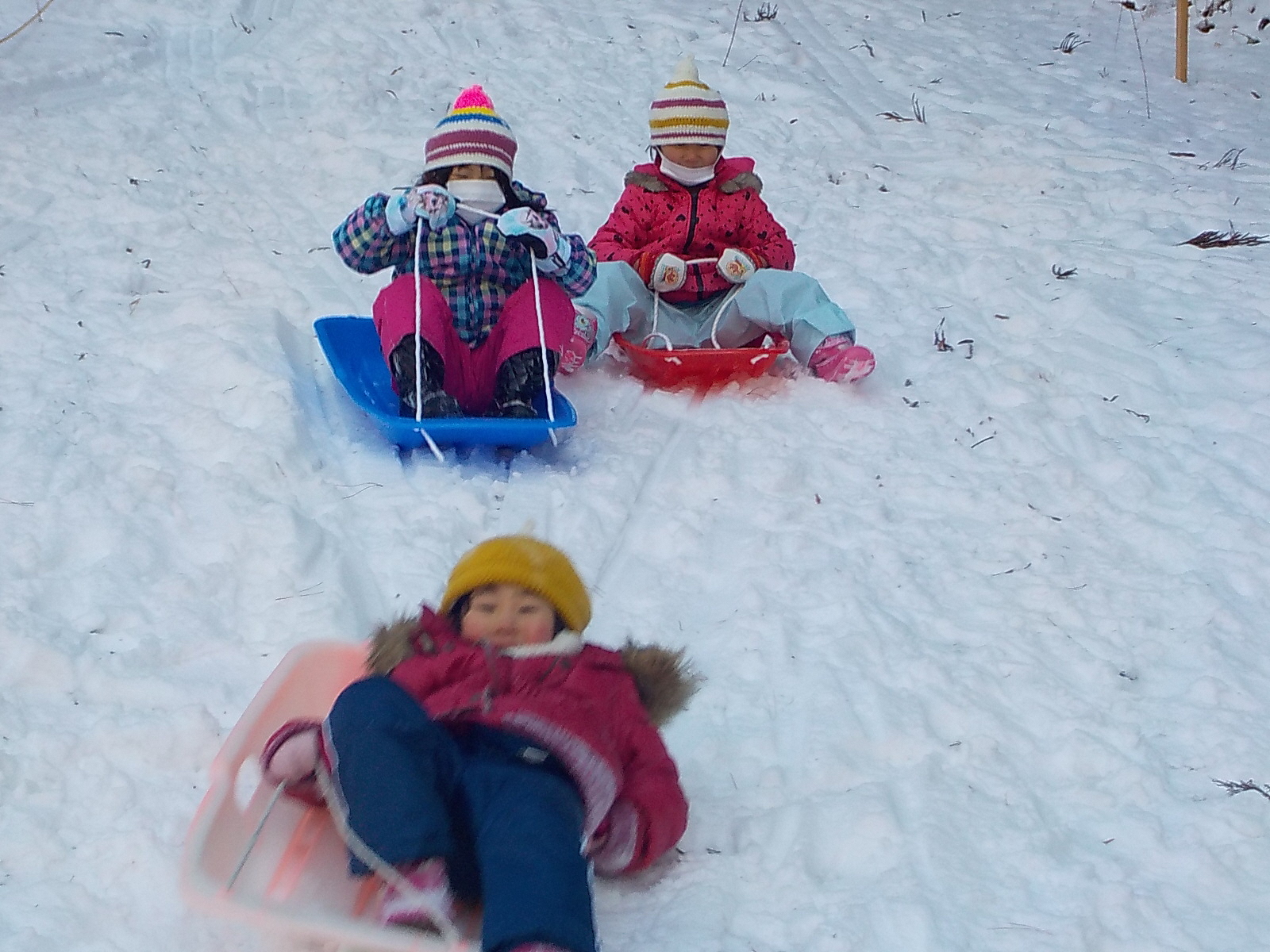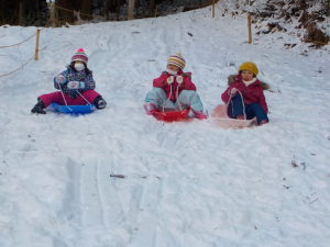 ・「寒いから 外遊びには行かない・・」と言っていたお友達が、そり遊びに夢中になって「先生!早くそりに行くよ」と保育士を誘うようになりました。おかげ様で上村の子どもたちはインフルエンザはゼロ、風邪をひいて休む子もおらず、冬でも元気いっぱいです。