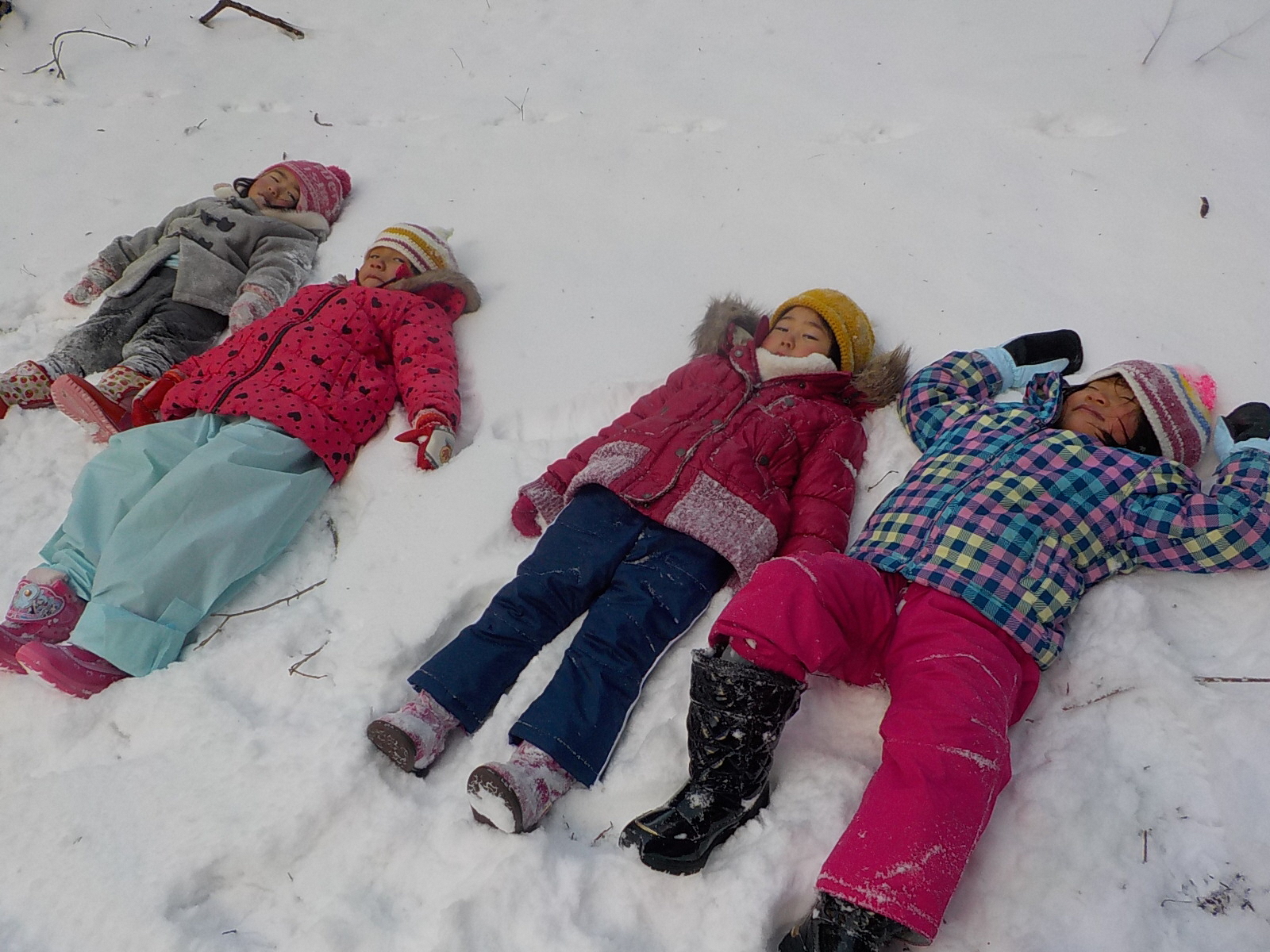 雪の上にみんなでゴロ~ン。