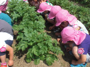 小さな畑でも大きくジャガイモが育ちカレーにして食べました。おうちにもお土産になるくらい小さな畑でたくさんの収穫ができました。