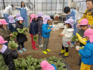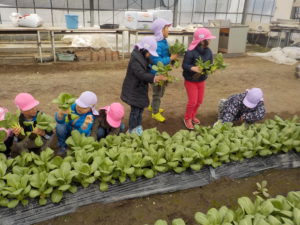 1人4~5株いただいて帰ってきました。給食のすまし汁は青梗菜を入れてもらい、お留守番の子たちも青梗菜をいただきました。