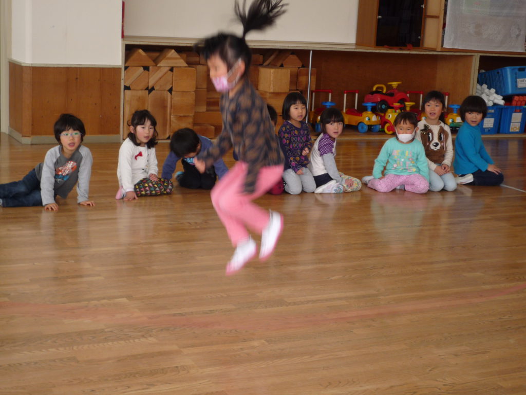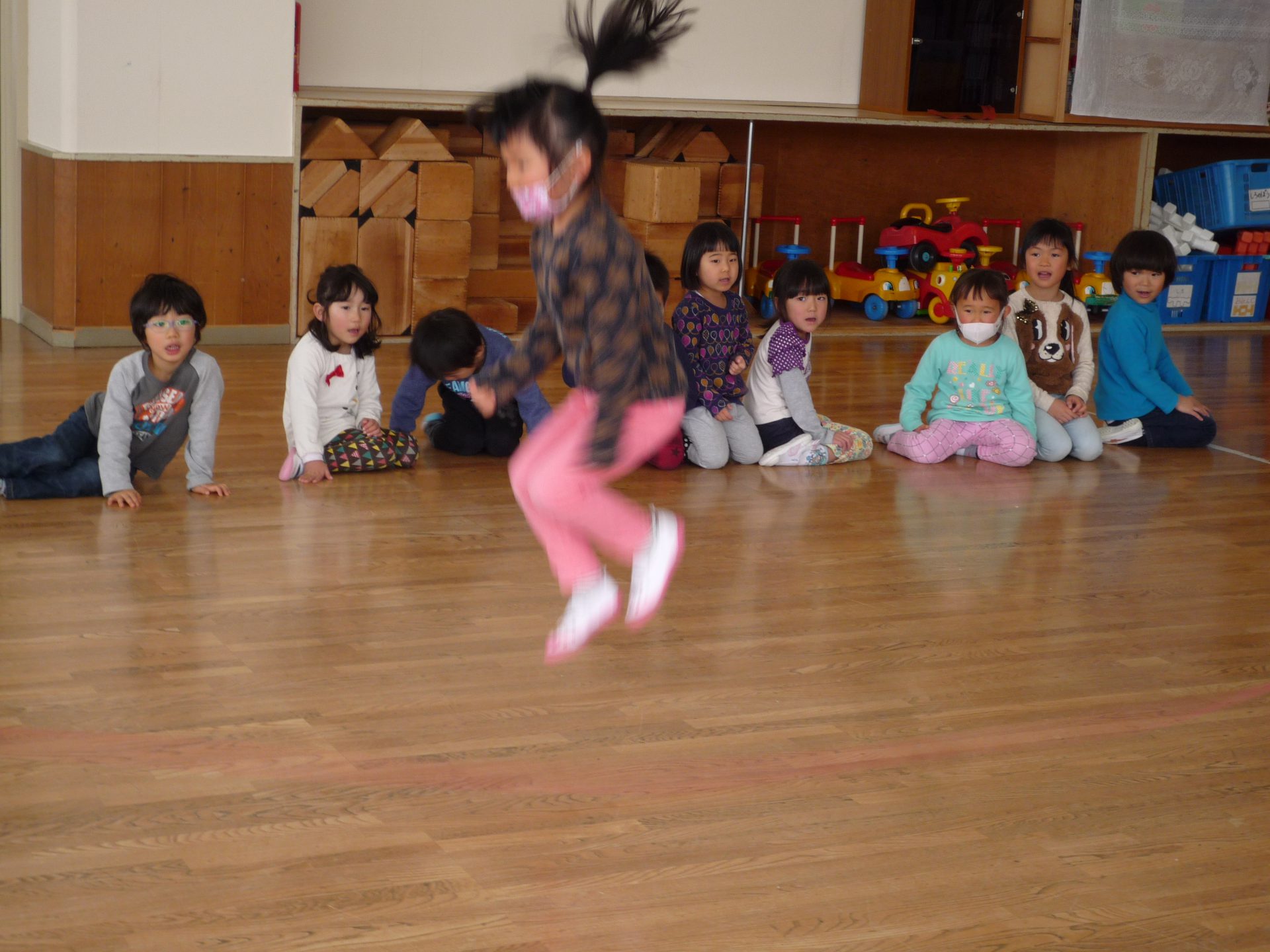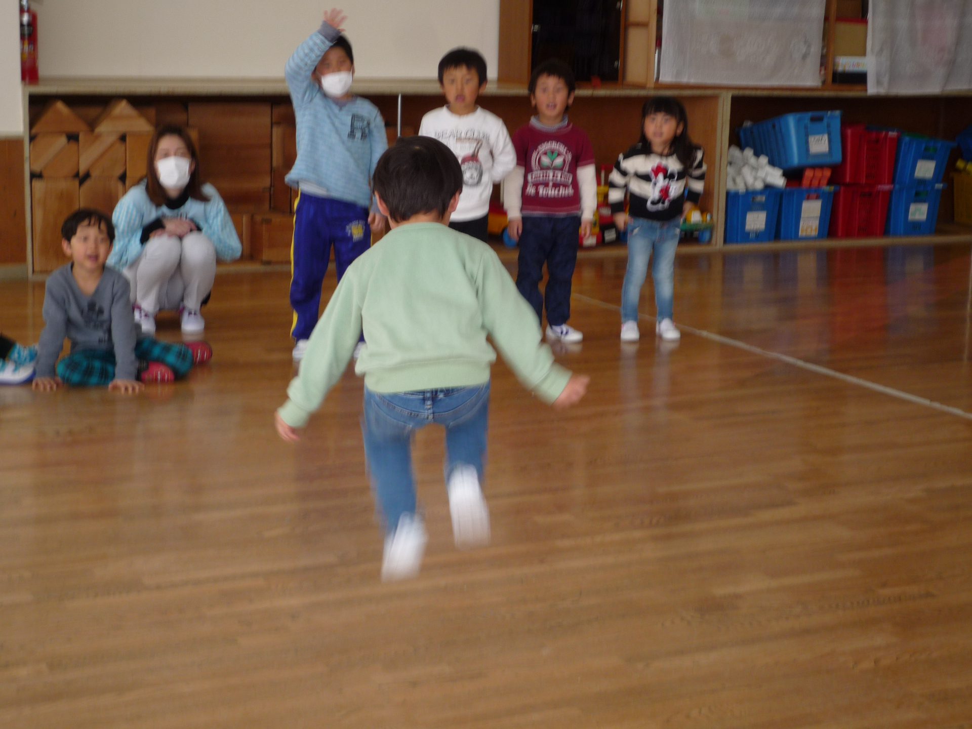 歌に合わせてジャンプするのですが継続して取り組む中でリズムをとりながら跳ぶことが上手になりました。