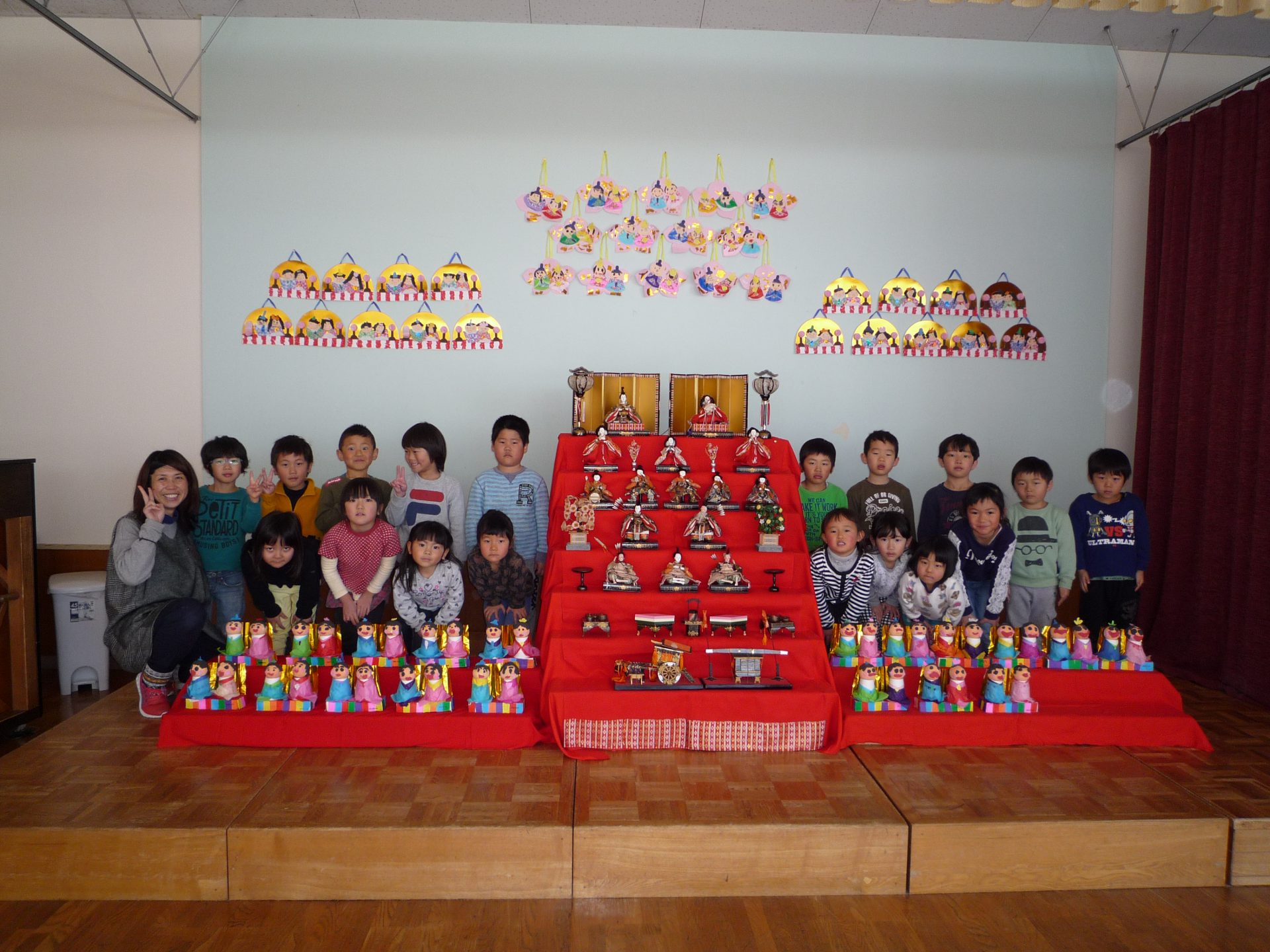 かわいい人形たちに囲まれながら今日は3月の誕生会のお祝いと一緒にひなまつり会を楽しみました。