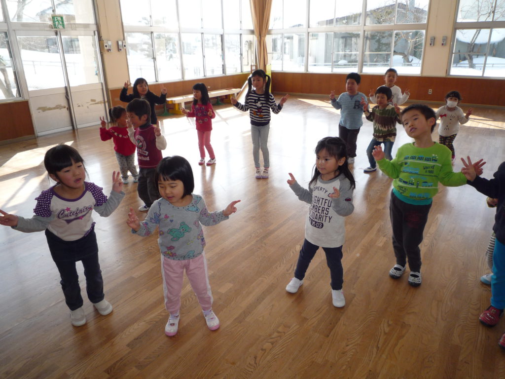 音楽が流れると大好きな「エビカニックス」を踊ります。振り付けも間奏の所はオリジナル!!なぜか肩たたき。