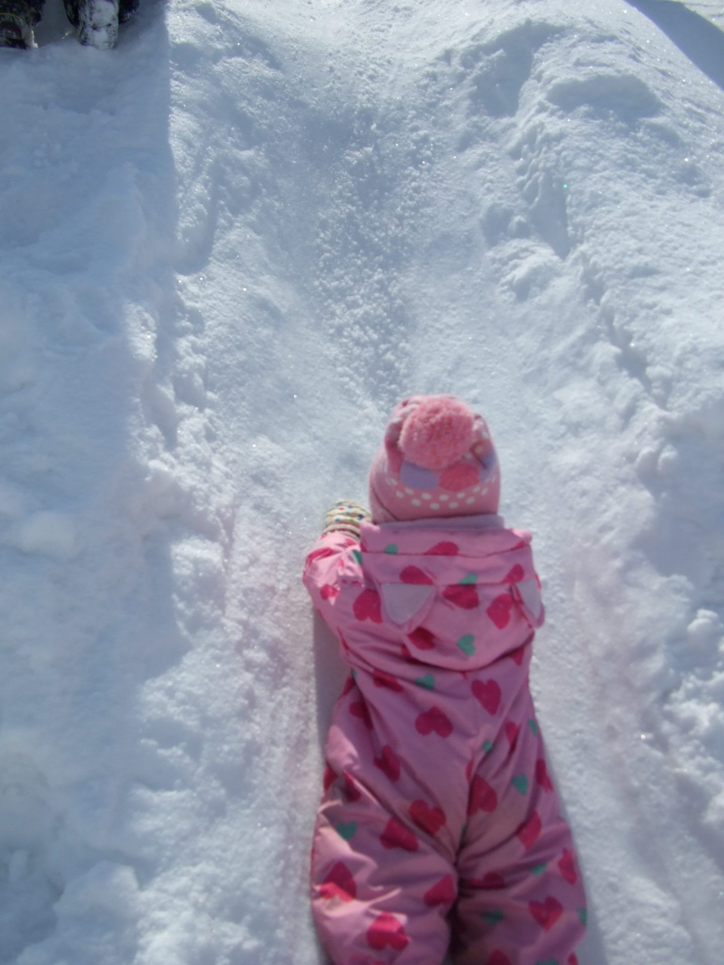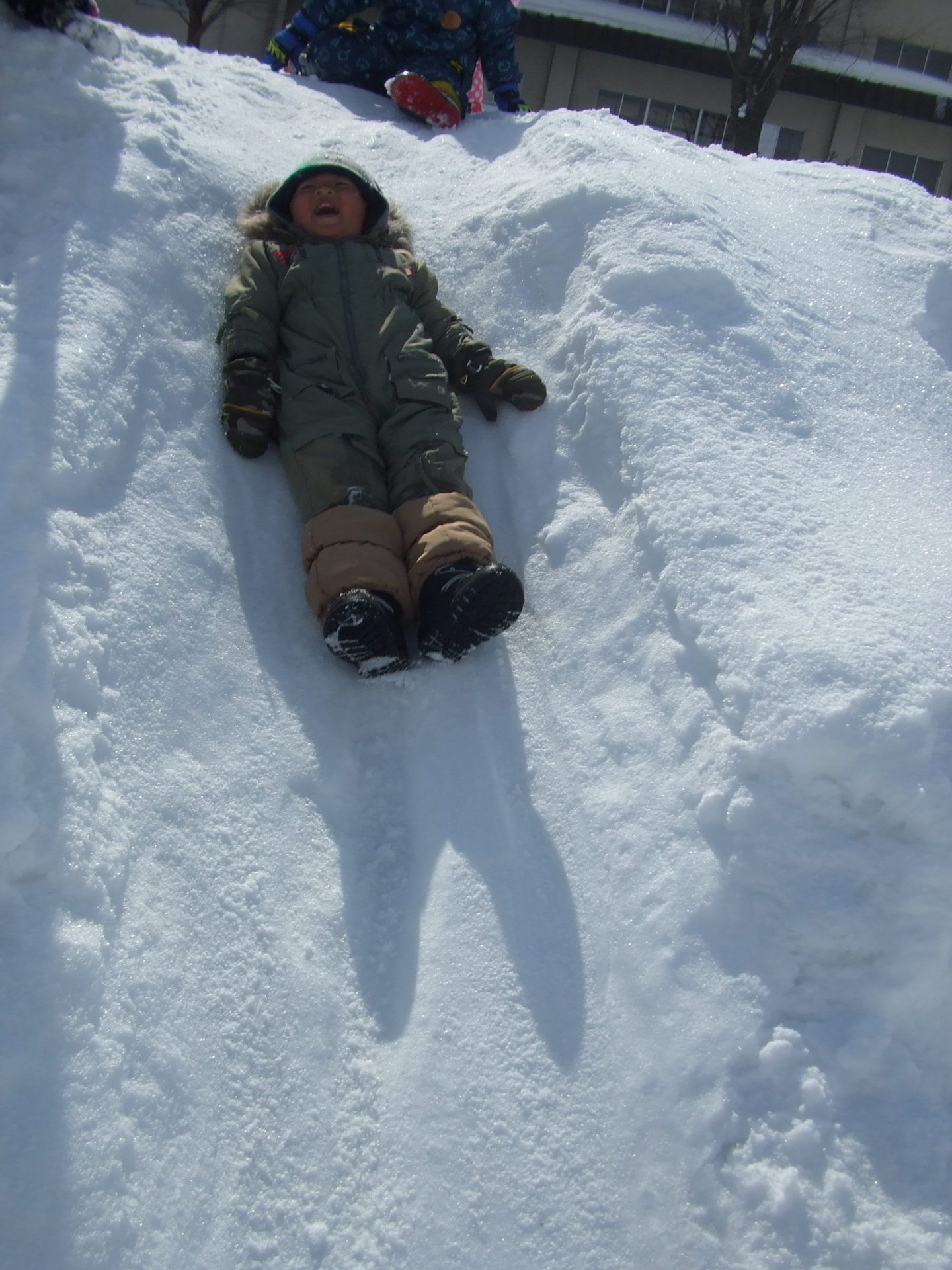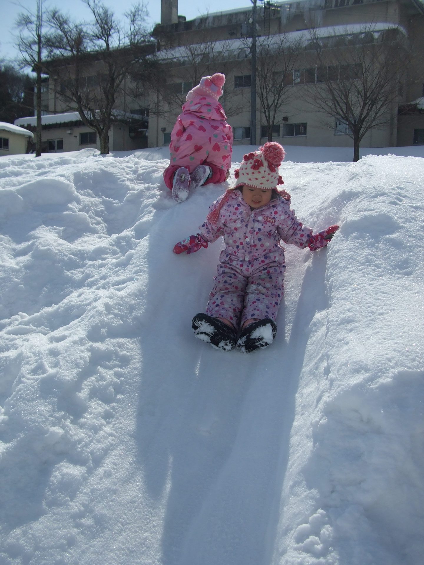 「こうやって滑る方が早いよ!」とうつ伏せになってみたり、