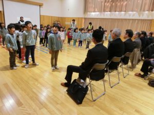 歓迎の気持ちを込めて「東みのわ保育園のうた」でスタートです。