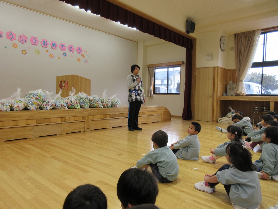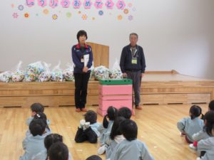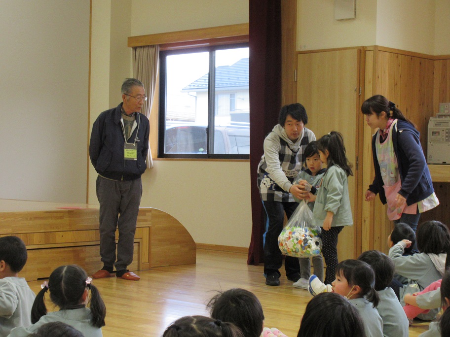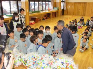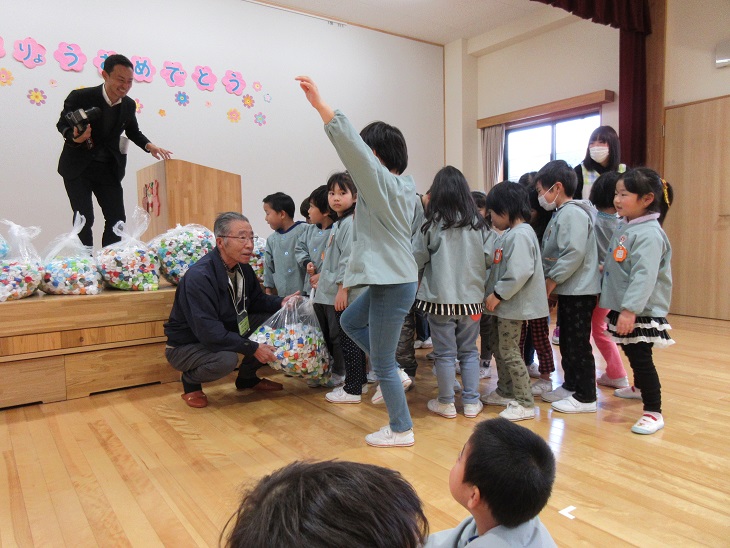 年長児が代表して1年分のエコキャップを寄付しました。