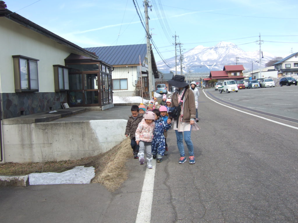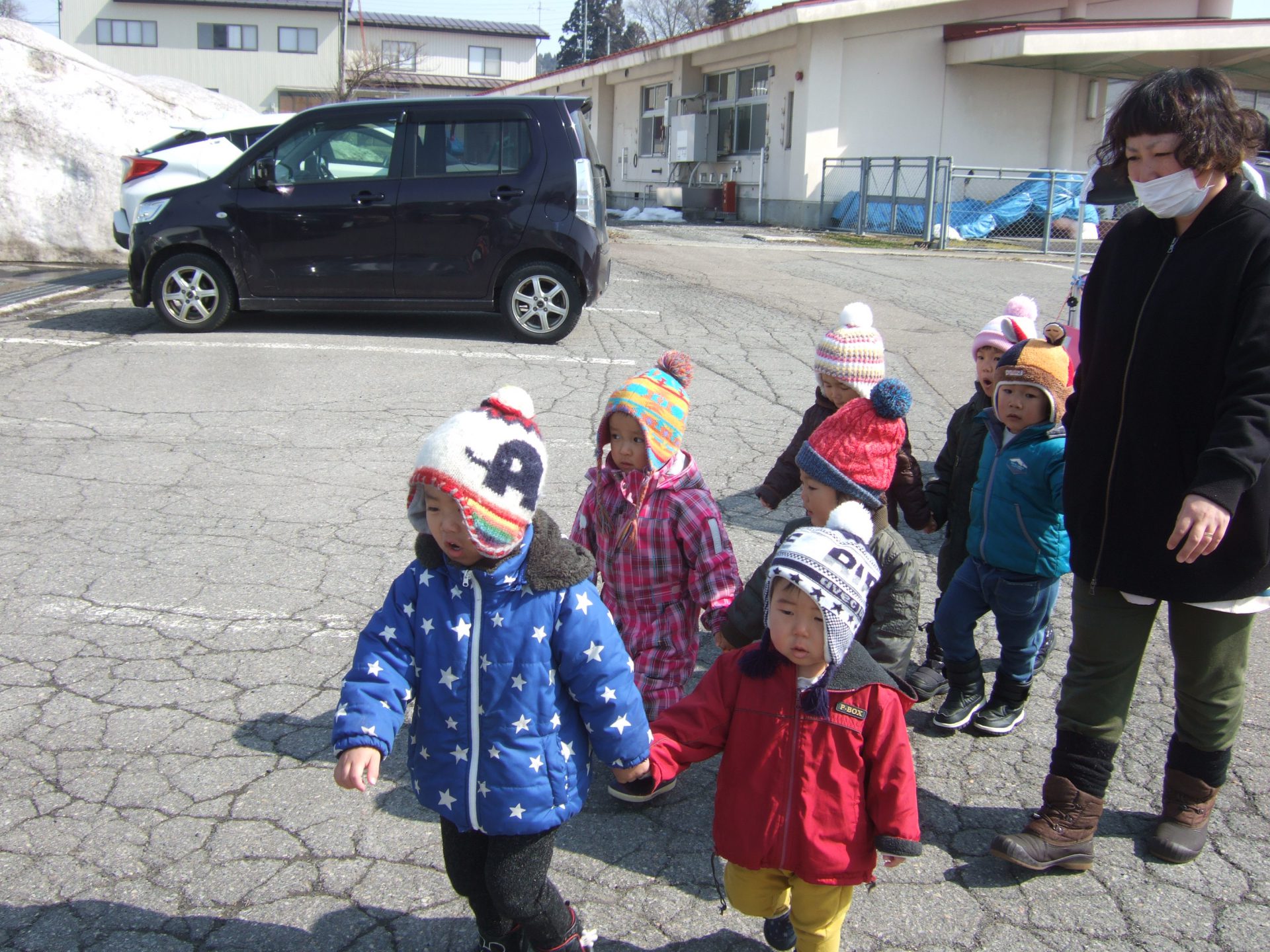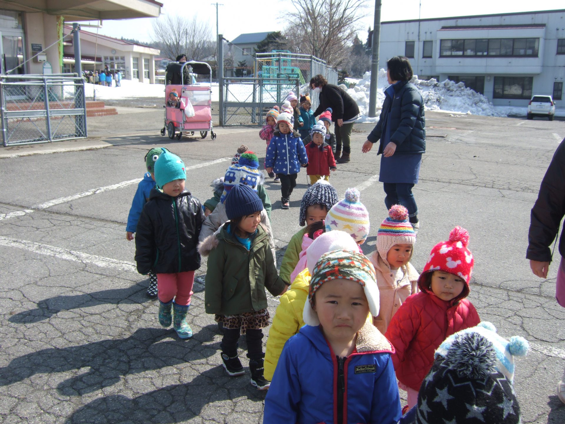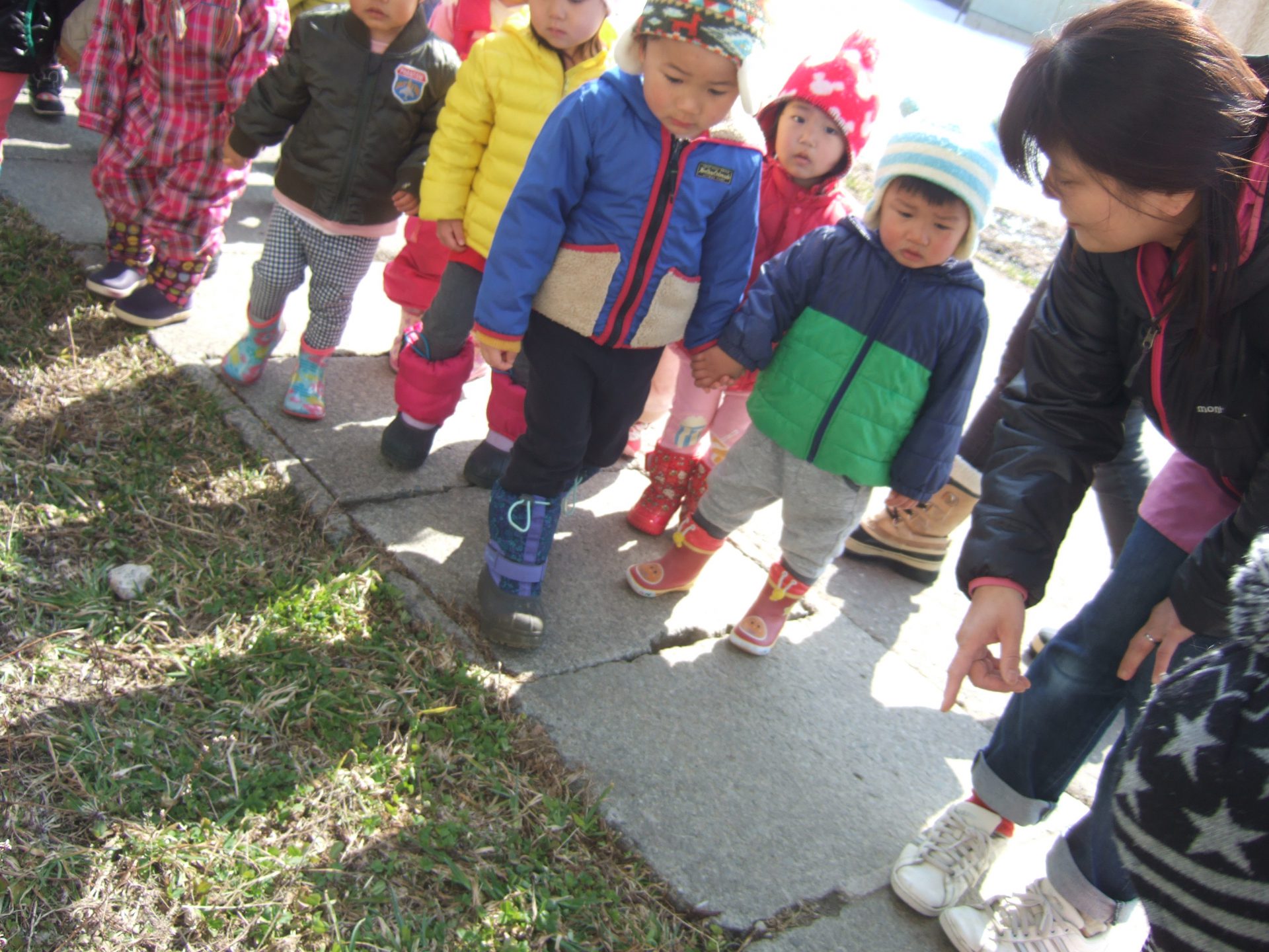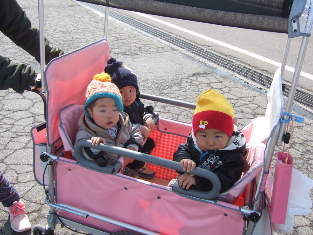 ポカポカ春のような陽気の中、未満児組さんみんなでお散歩に行ってきました。