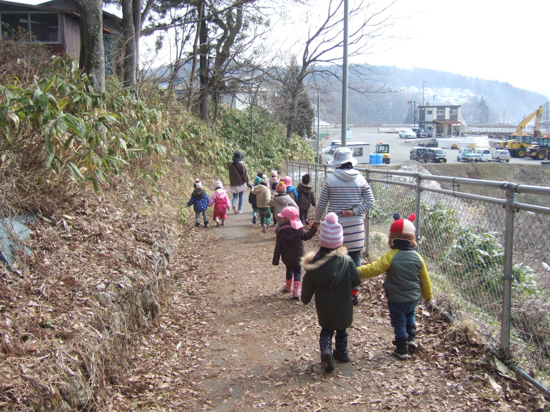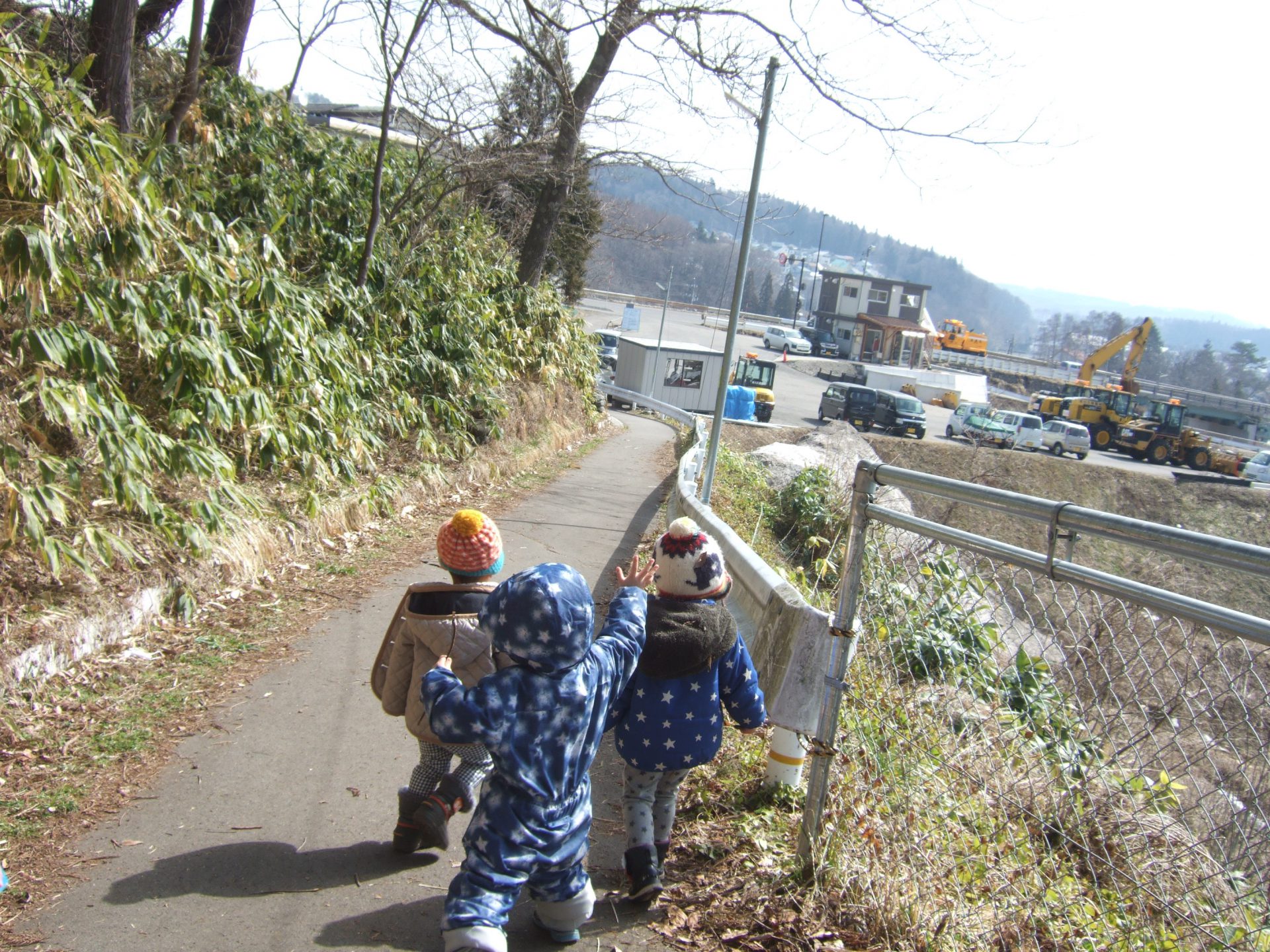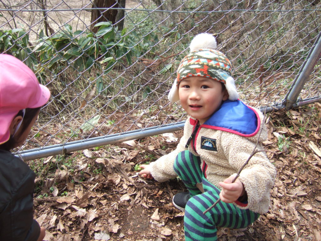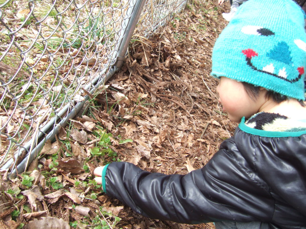 秋にもたくさんお散歩に来ていた場所なので「ここきたことある」と子ども達。
