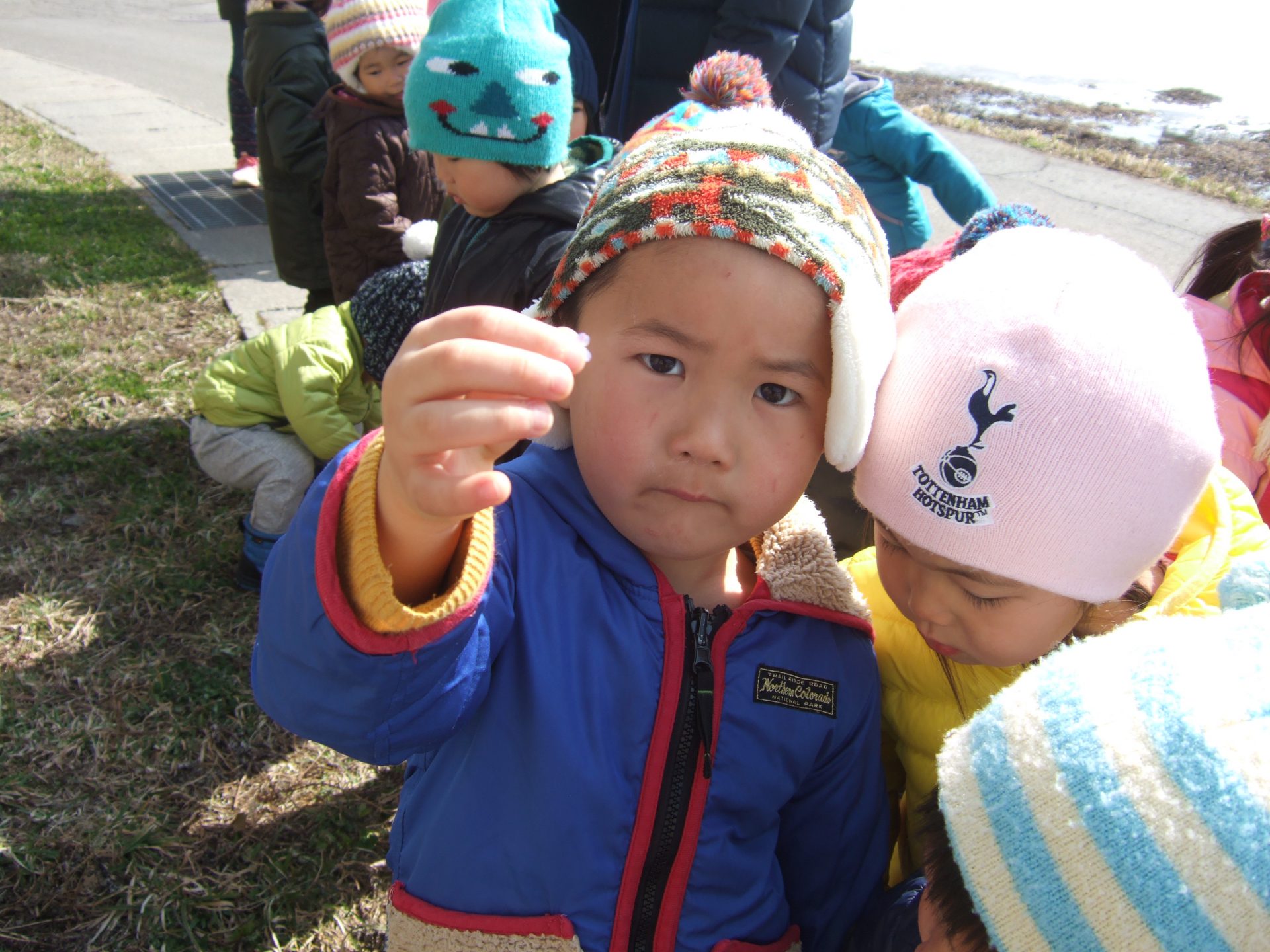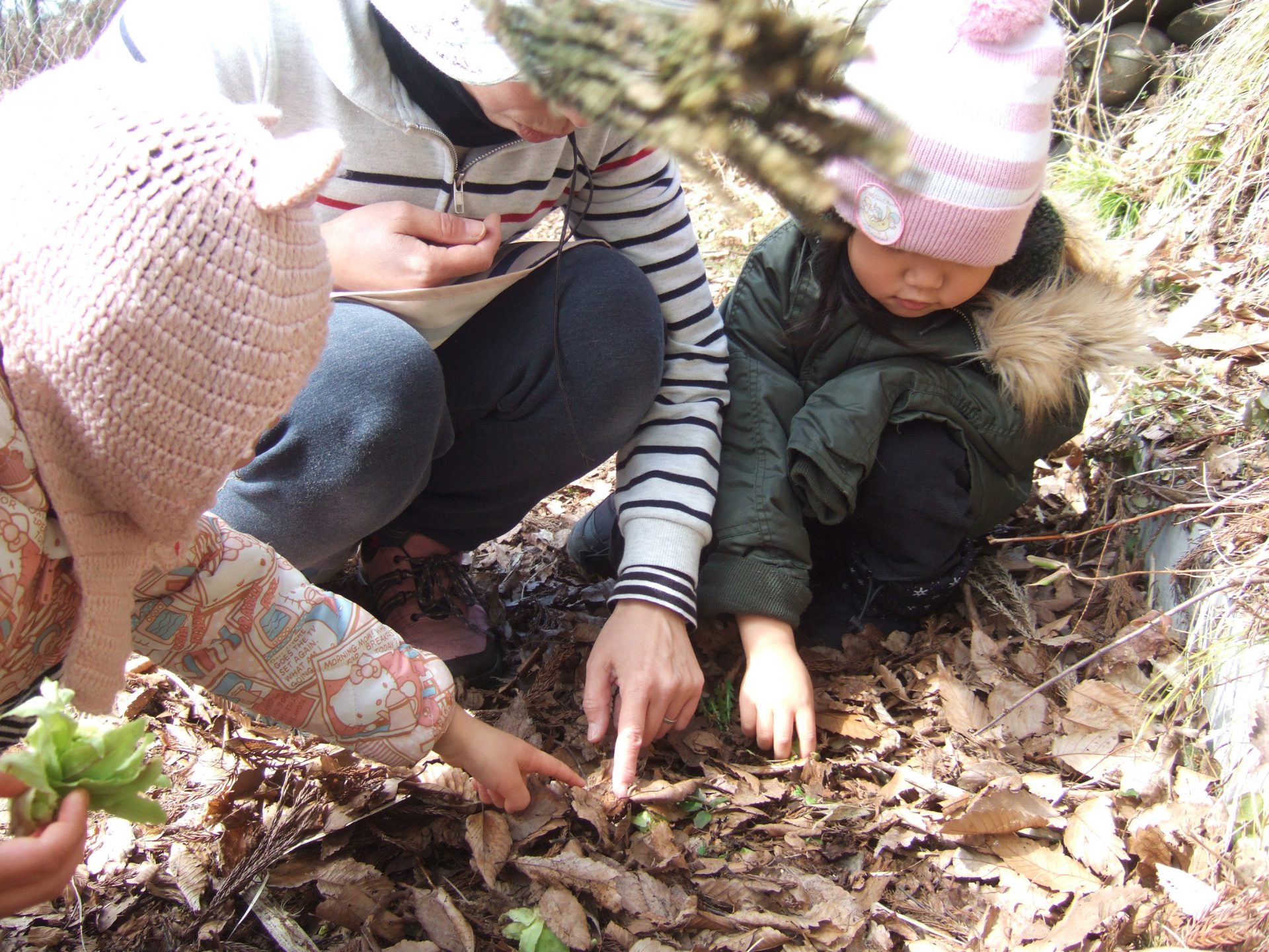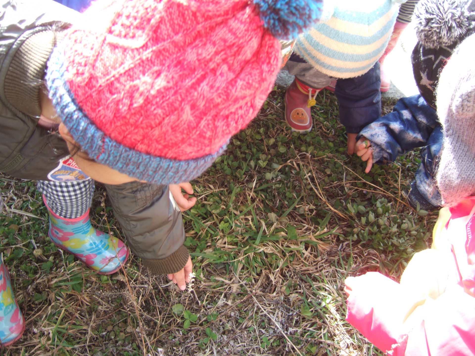 秋にもたくさんお散歩に来ていた場所なので「ここきたことある」と子ども達。
