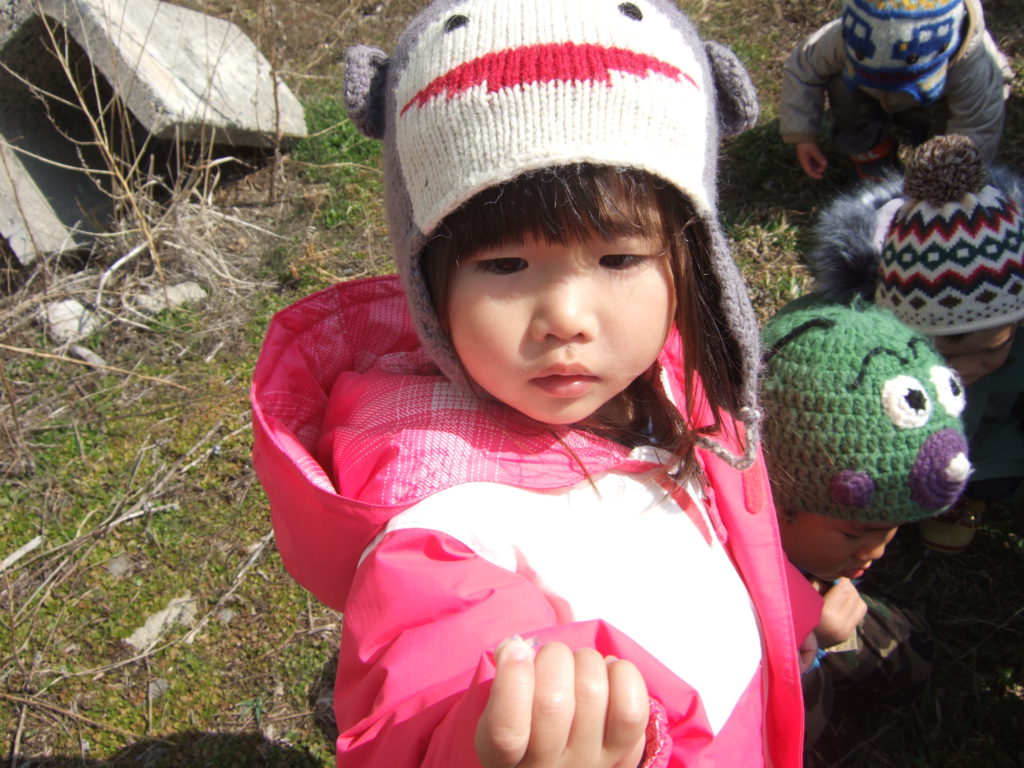 保育園に大切に持ち帰ってきたフキノトウ。