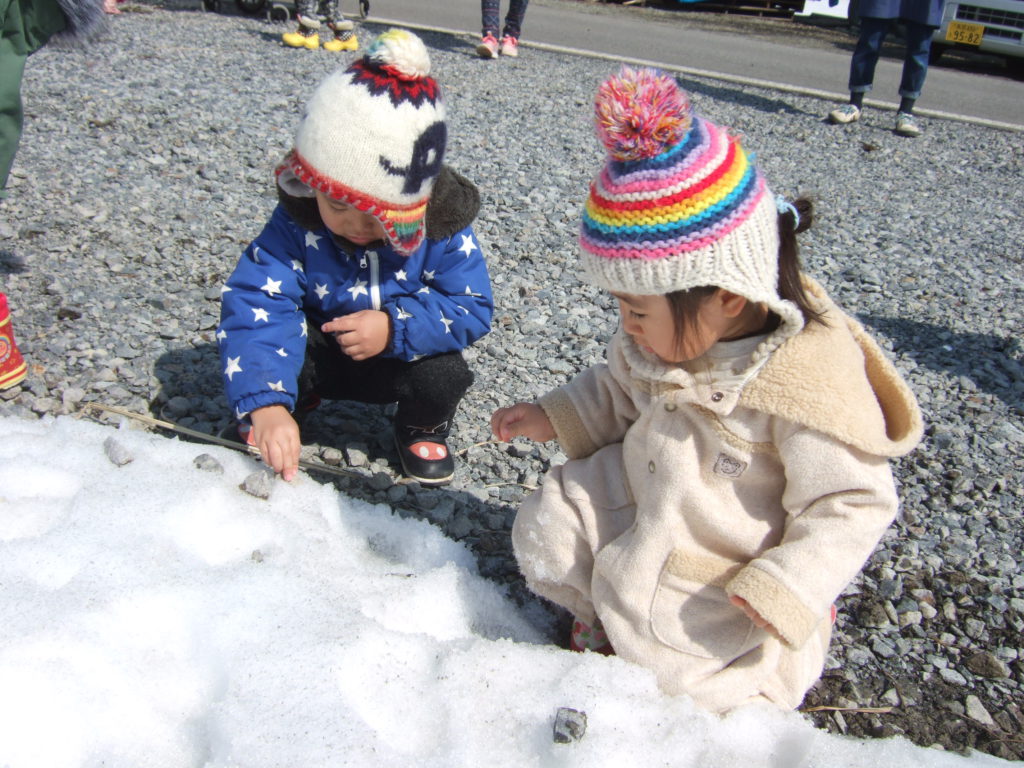 この冬、雪山でたっぷり遊んできた子ども達、早速遊び始めます。