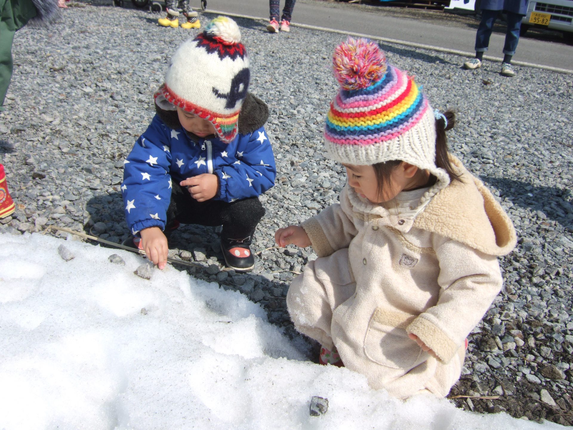 石を雪に埋めて楽しんでいるお友達もいましたよ。