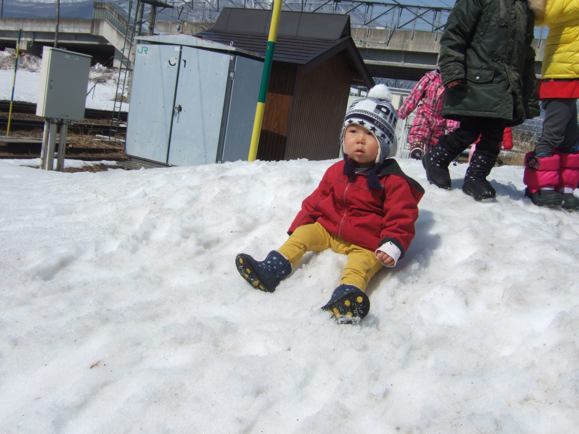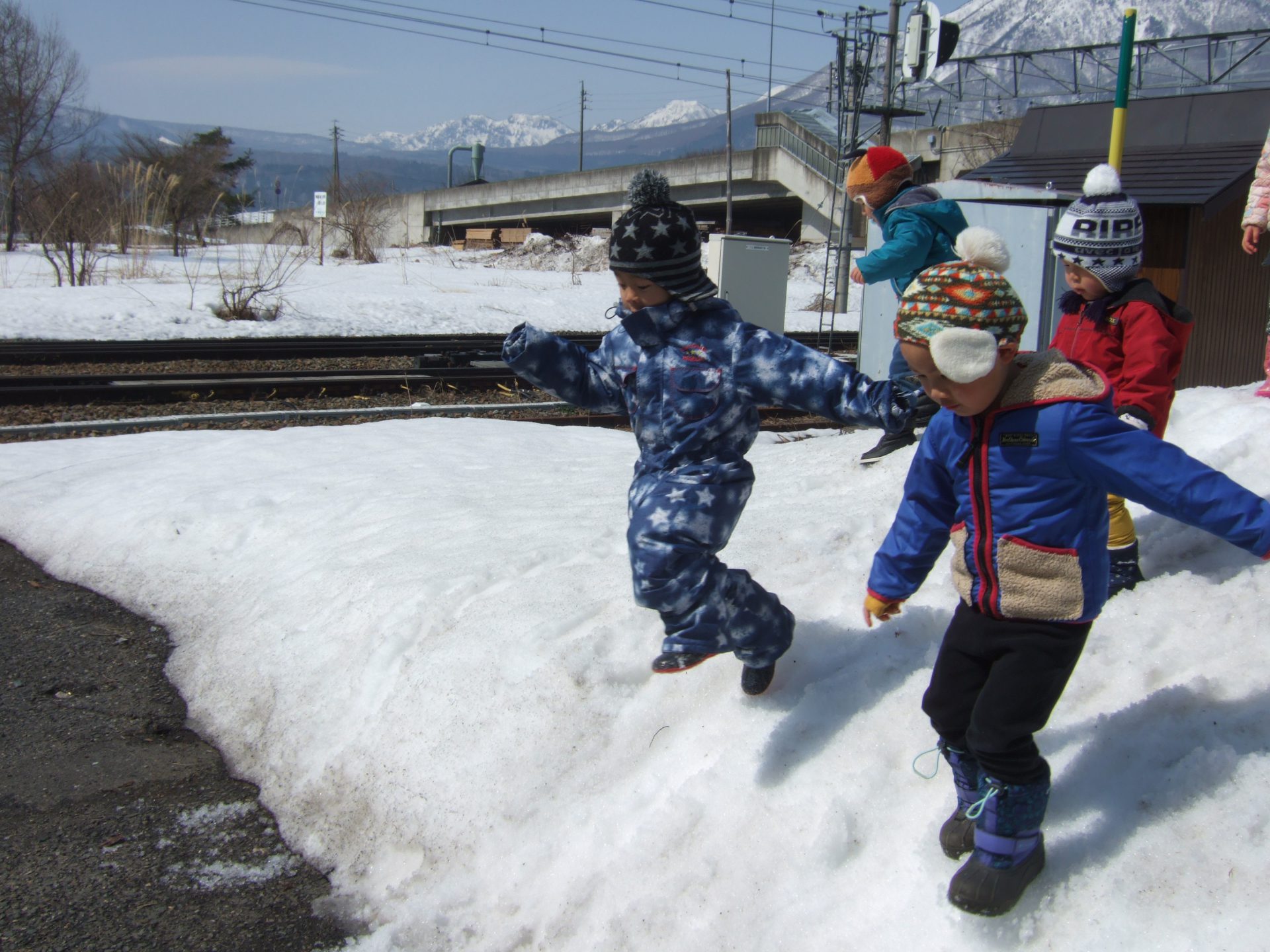 保育園の庭の雪山はすっかり小さくなりましたがここにはまだ雪がたくさん残っていました。