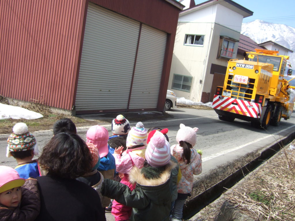 たくさん遊んだ帰り道、さっきも見た除雪車が通り過ぎました。大迫力!!