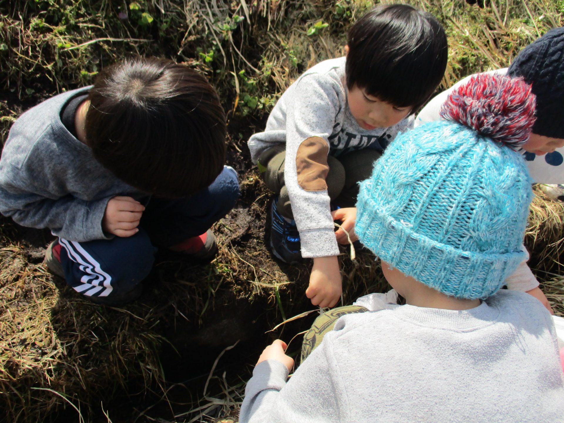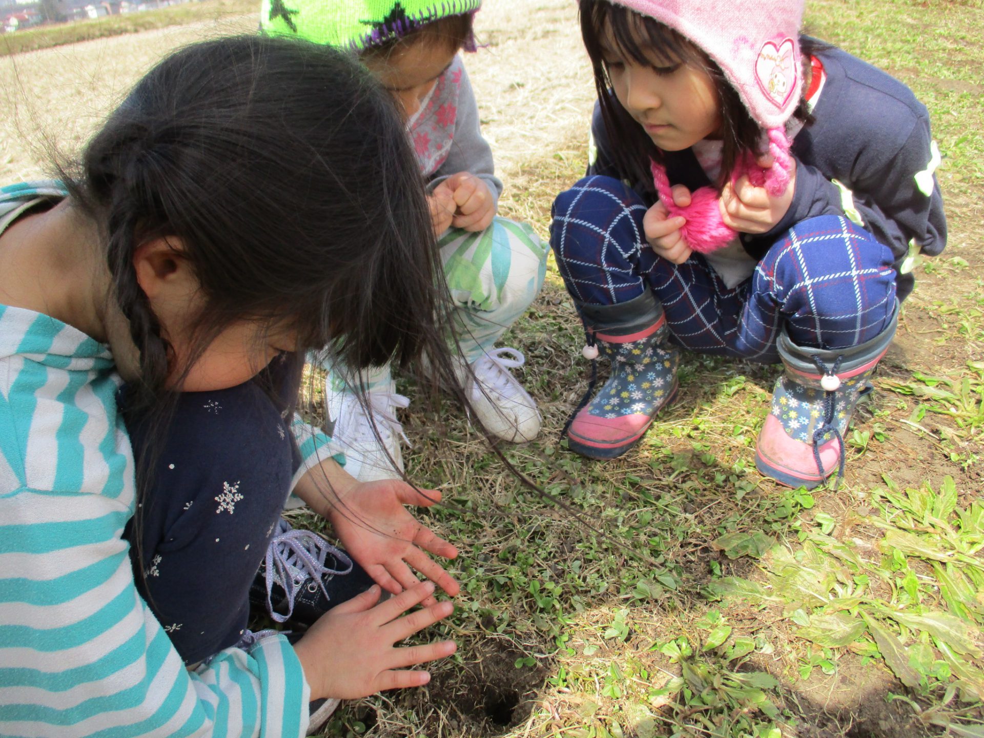 こちらでは、年長さん達が、ふきのとうを発見!!