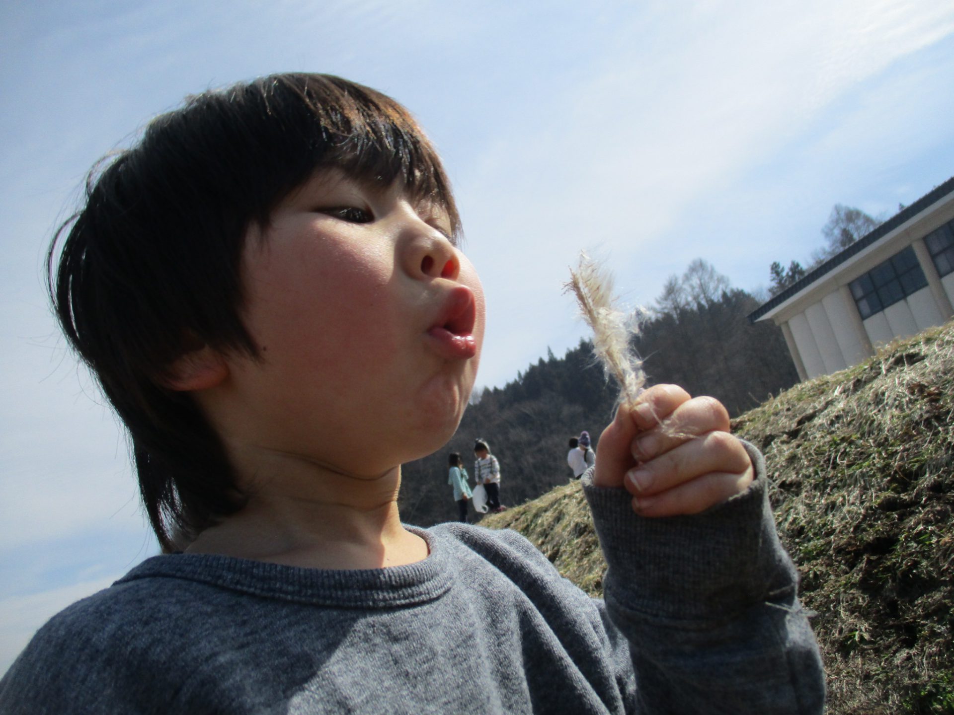 「見てみて!たんぽぽ見つけたよ!綿飛ぶかな〜?ふぅ〜〜〜〜〜!」
