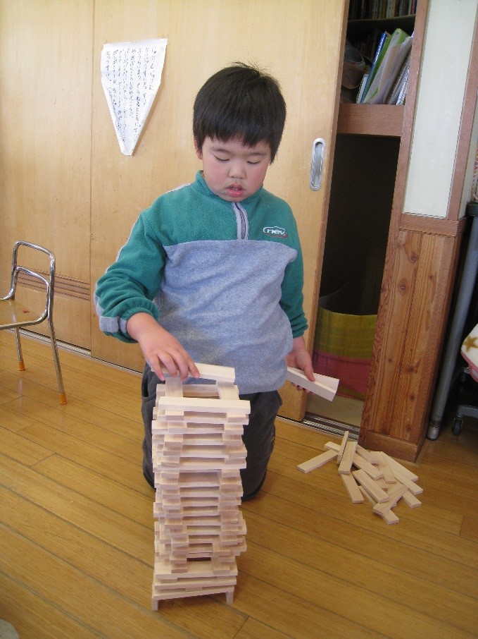 それぞれ工夫しながら、手触りの良い積み木でたっぷり遊びました!