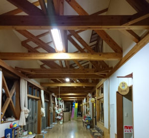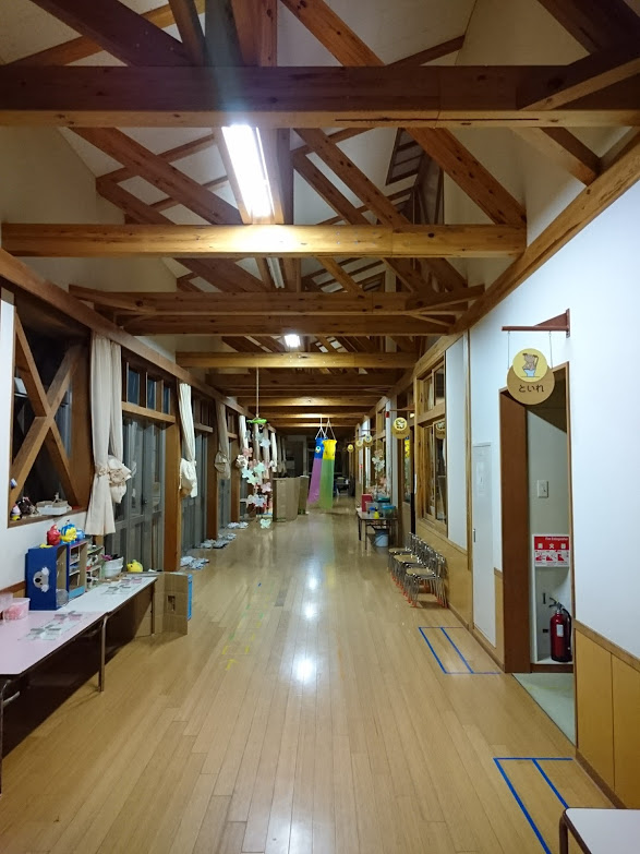 園舎も無垢の木を使っていて、梁や柱が素敵な園舎です。