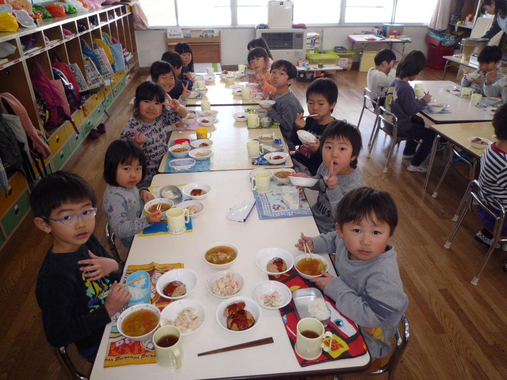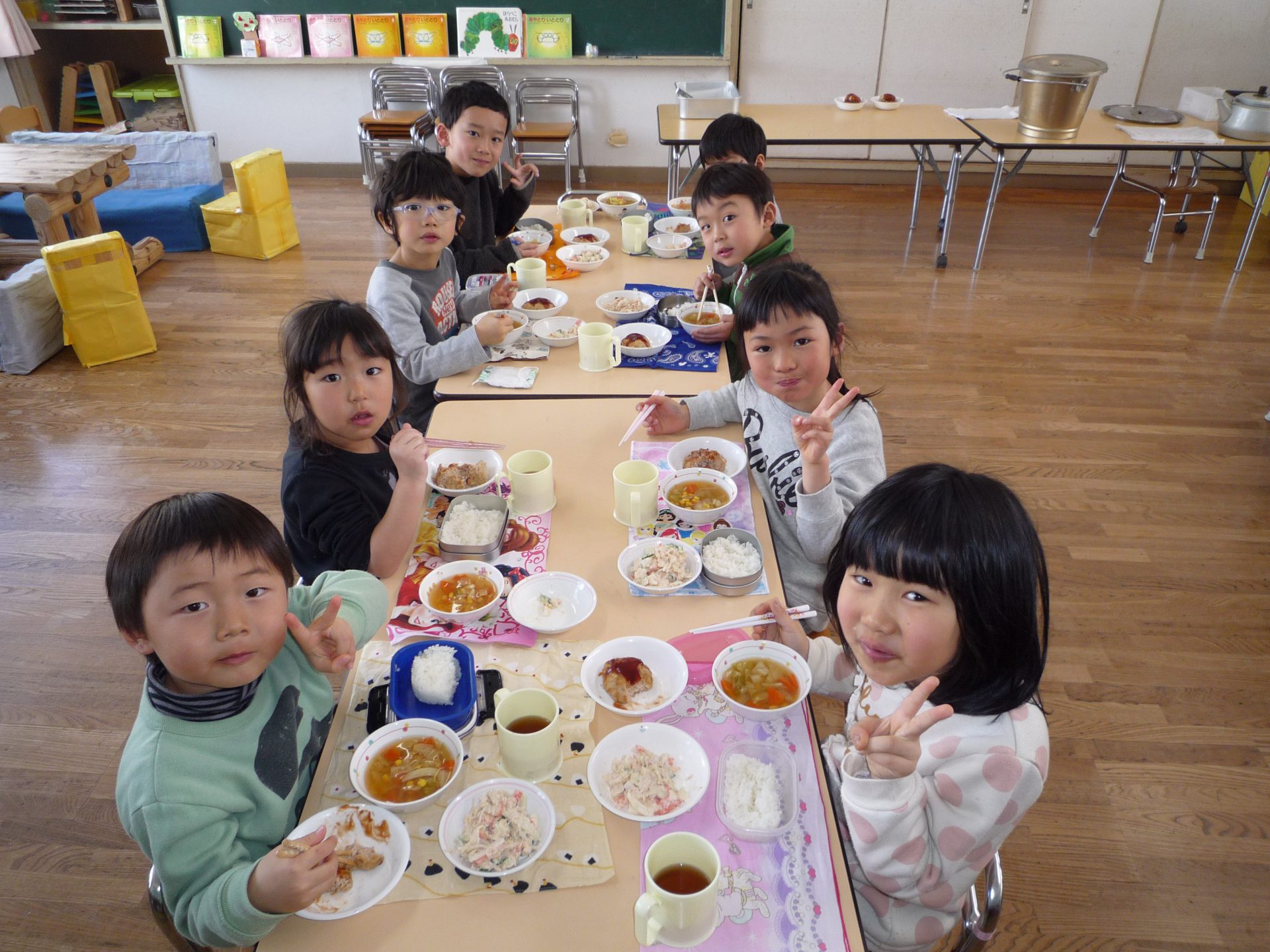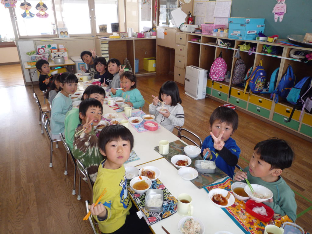 卒園までの数ヶ月、「仲良し給食」や「思い出給食」で好きなクラスでご飯を食べたりみんなでリズム室で一緒に食べながら過ごしてきました。
