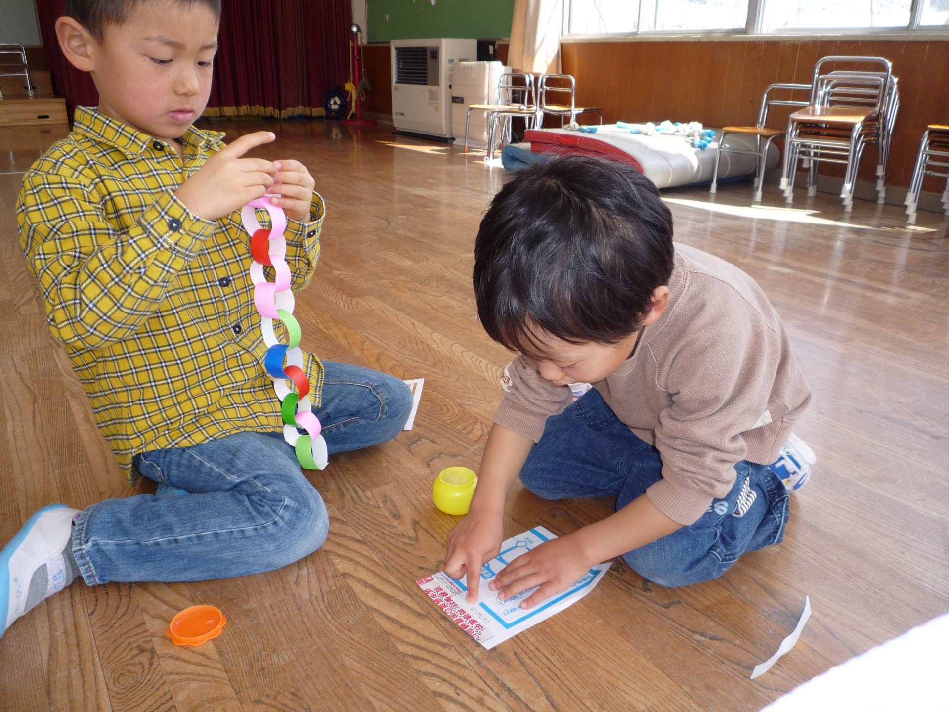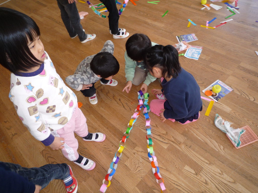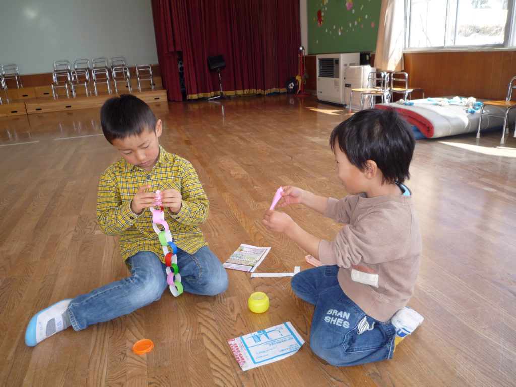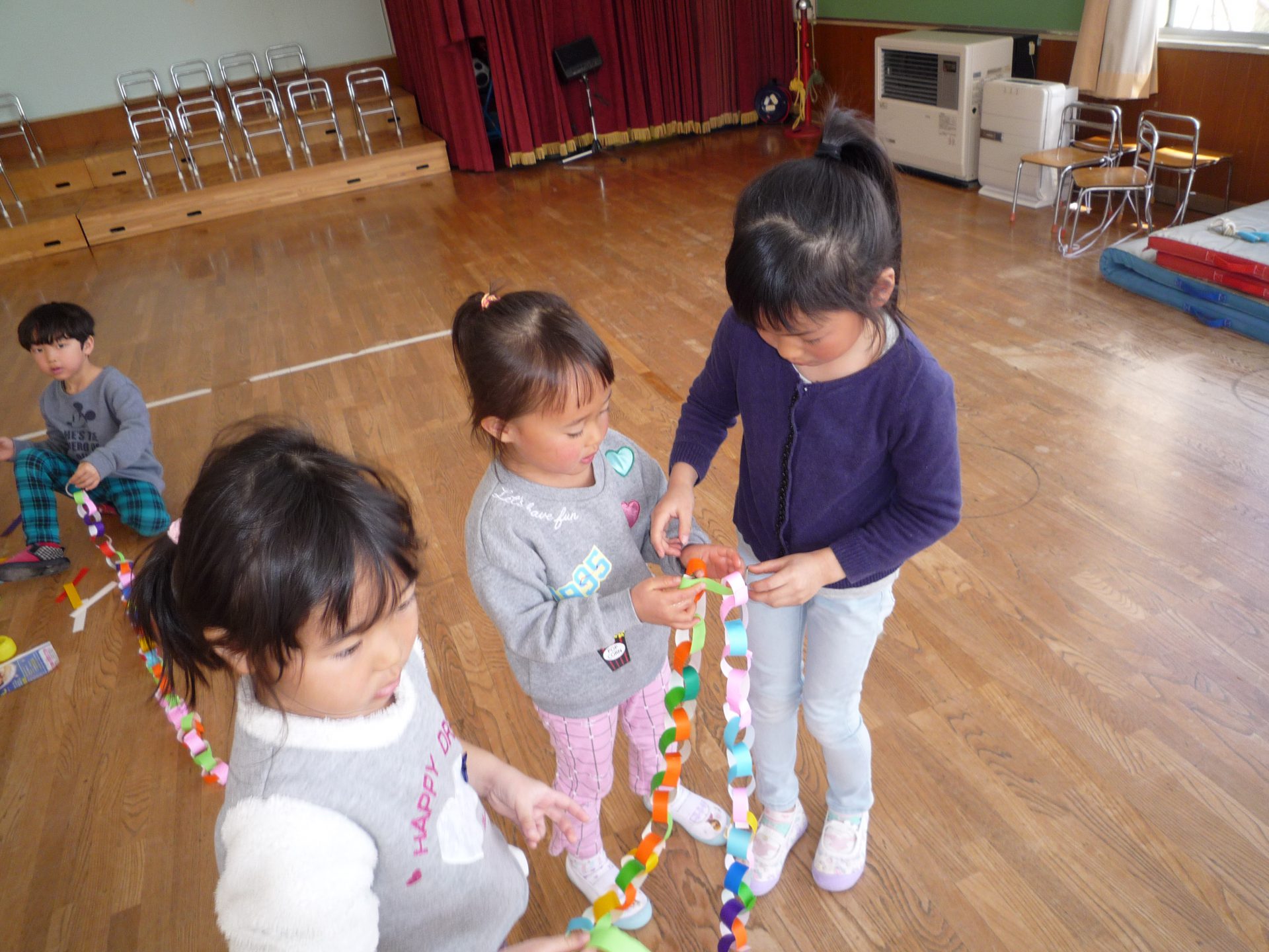 そんな大好きなお兄さん・お姉さんの為に「お別れ会」では自分達が出来る輪つなぎをしたりネックレスを作ったりしてお祝いしました。