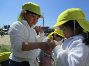 ・春の散策活動を多く取り入れ、子ども達が身近な自然に興味・関心を持ち、自ら関わり遊びに取り入れるようになって欲しい。