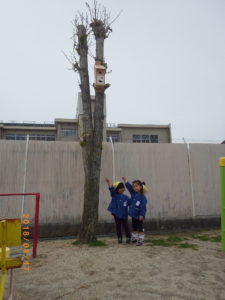 長野県民文化部次世代サポート課からいただいた小鳥の巣箱に年長さんが小鳥の絵を描きました。